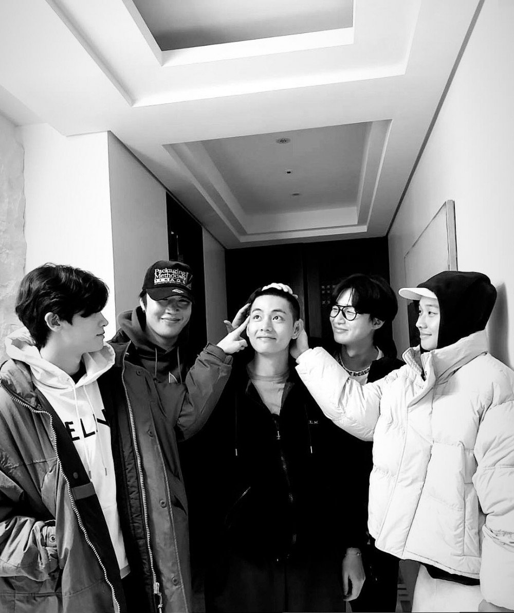 Өөрсдийгөө "Wooga Squad" хэмээн нэрлэдэг V, Пак Со Жүн, Пак Хюн Шиг, Чой Ү Шиг, Пикбой нар дотно нөхөрлөдгөөрөө алдартай. Найзууд дундаасаа хамгийн сүүд цэрэгт татагдаж буй V-г өхөөрдөн толгойг нь илж буй зургаа тэд инстаграм хуудаснаа оруулсан бөгөөд Пак Со Жүн "Манай хамгийн бага маань цэрэгт татагдлаа, сайн яваад ирээрэй" гэжээ.