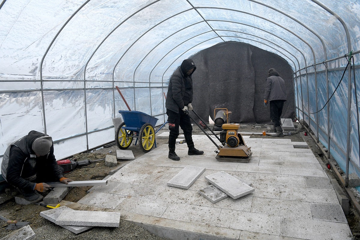 32-ын тойргоос Хүнсний 4-р дэлгүүрийн уулзвар хүртэл явган хүний зам тавьж буй. Ингэхдээ хүйтний улиралд бүтээн байгуулалтыг зогсоолгүй, технологийн горим алдахгүй байх зорилгоор зөөврийн хүлэмж ашиглаж байна.