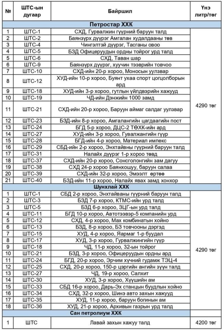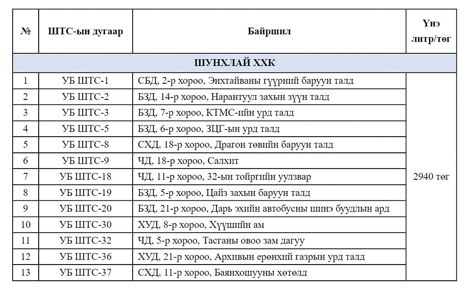БНХАУ-аас импортолж буй Евро-5 стандартын дизель түлшийг дараалал болон хязгаарлалтгүй олгож байгаа ШТС-уудын мэдээлэл