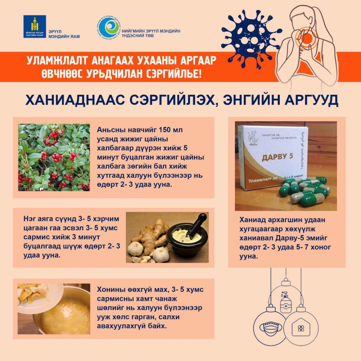 Уламжлалт анагаах ухааны аргаар өвчнөөс урьдчилан сэргийлье! Эрүүл мэндийн яамнаас дараах энгийн аргуудаар ханиад, томуунаас сэргийлэхийг зөвлөж байна.