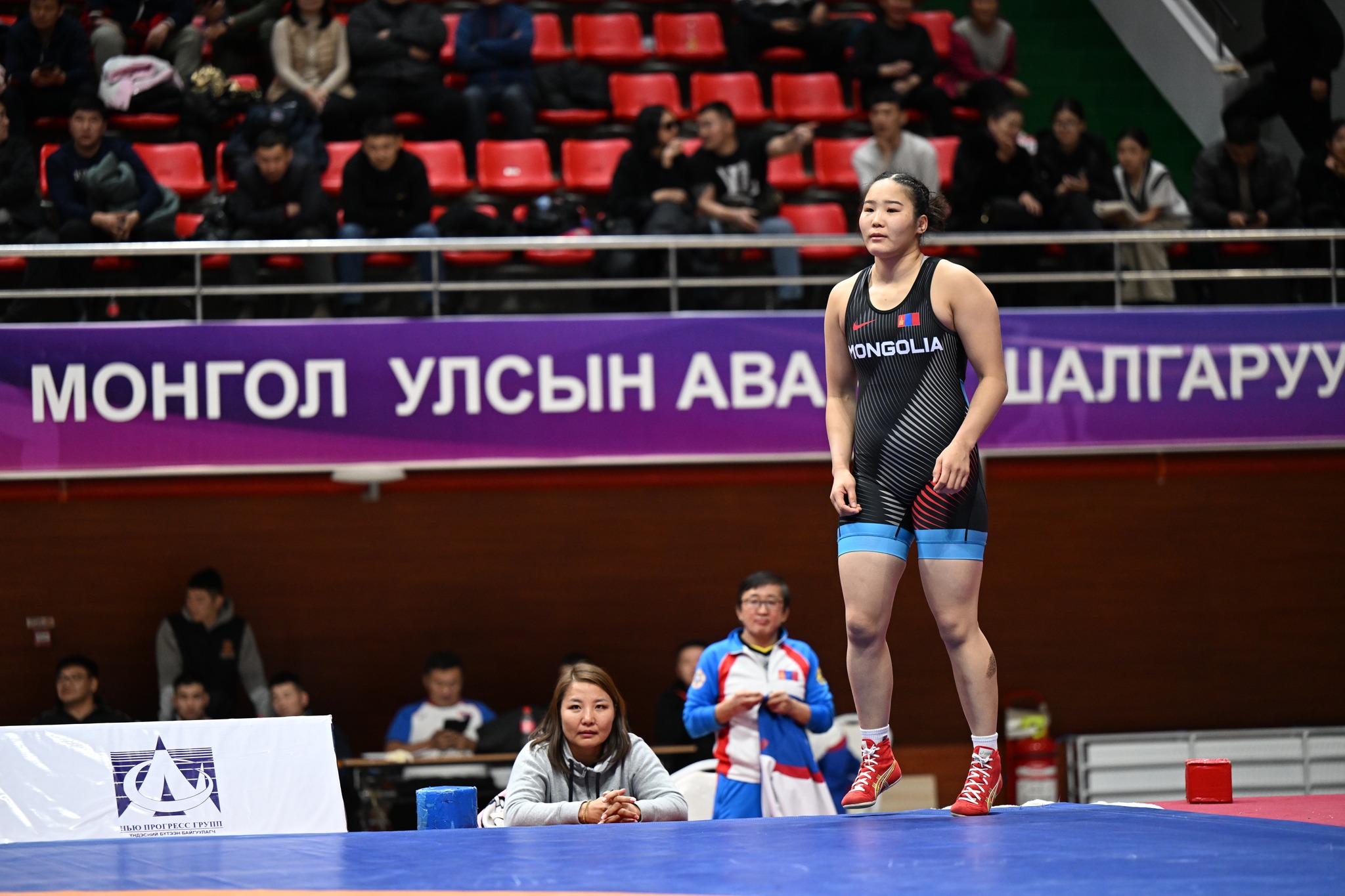 Энэ жингийн хүрэл медалийн төлөөх барилдаанд “Алдар”-ын Г.Ариунжаргал “Хилчин”-ий Г.Уртнасанг цэвэр яллаа.
