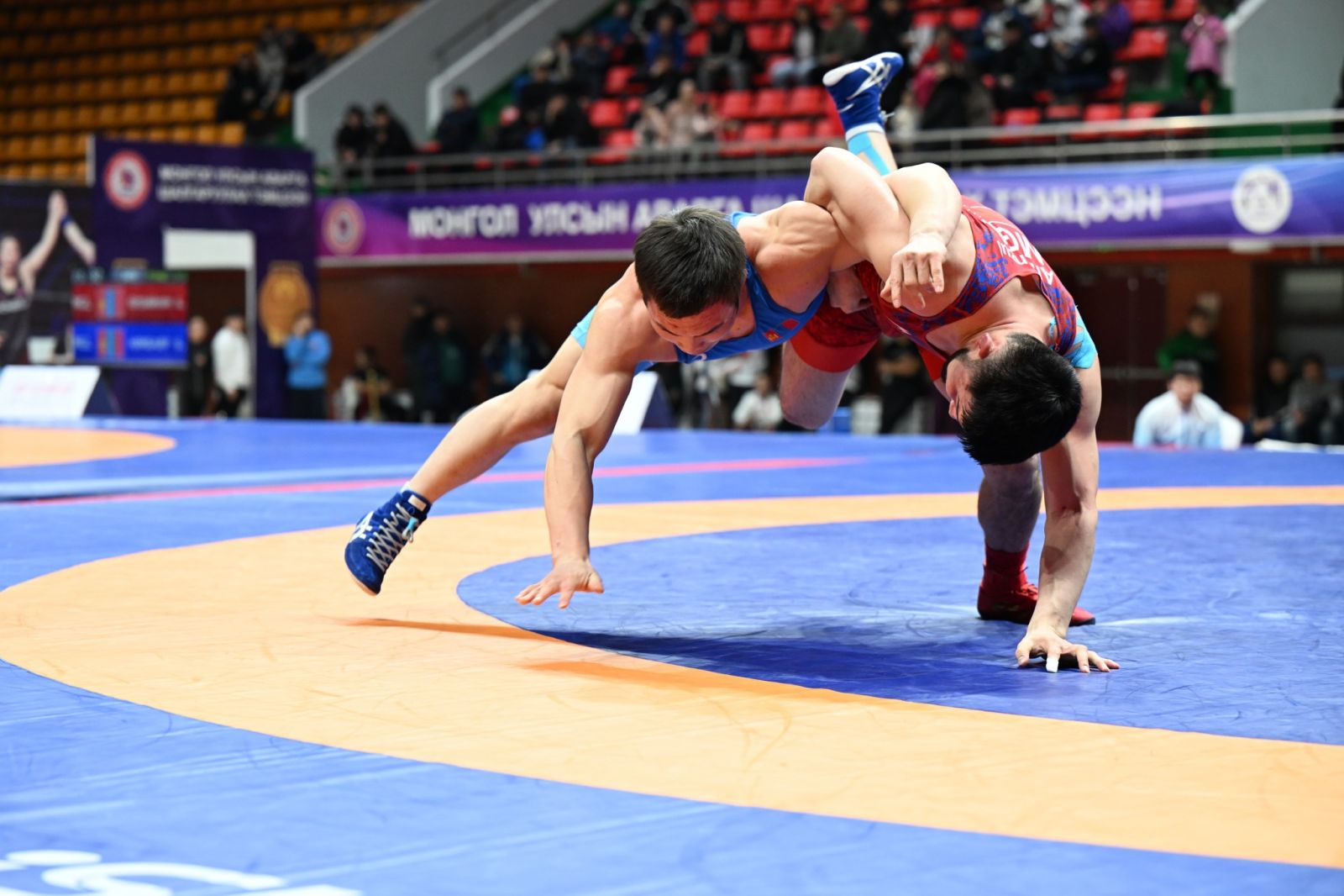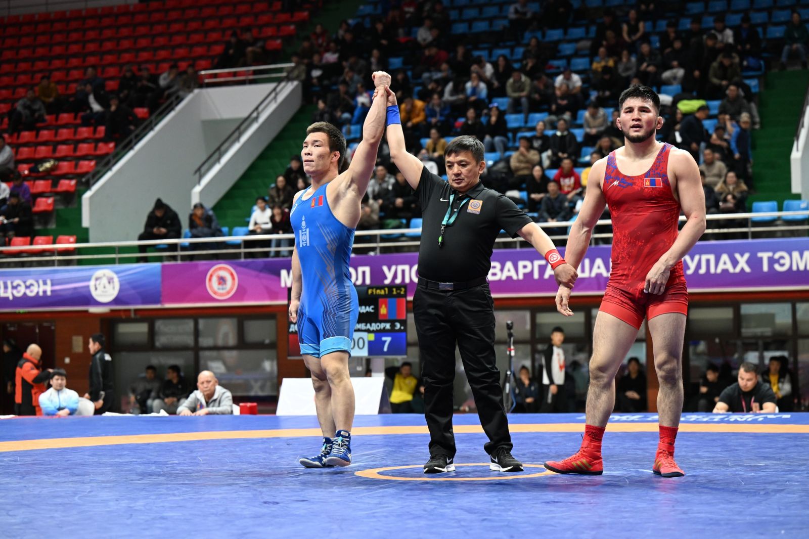 Чөлөөт бөхийн УАШТ өчигдөр /2024.01.14/ өндөрлөлөө. Эрэгтэйчүүдийн 79 кг-д “Шандас” клубийн тамирчин, өсвөр, залуучууд, насанд хүрэгчдийн улсын аварга Э.Бямбадорж түрүүллээ. Тэрбээр шигшээд “Хасу мегастарс” клубийн А.Дөлгөөнийг 7:2-оор буулгаж авав.