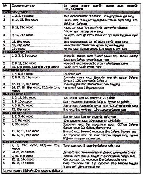 СБД-т Дамба халамжийн касс БЗД-ийн 21-р хороо, ЧД-т Чингэлтэй касс СБД-ийн 14-р хороо, СХД-ийн Таван шар касс БГД-ийн 20-р хорооны иргэдийн эх орны хишиг хувийн мөнгийг тус тус давхар олгоно.
