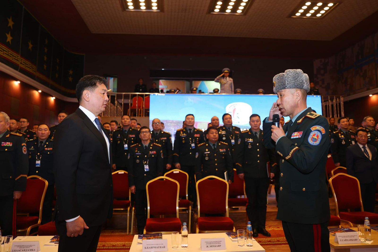 Дараа нь Монгол Улсын Ерөнхийлөгч, Зэвсэгт хүчний Ерөнхий командлагч У.Хүрэлсүх Зэвсэгт хүчний удирдах бүрэлдэхүүний цугларалтад оролцож буй Батлан хамгаалах, Зэвсэгт хүчний болон төрийн цэргийн байгууллагуудын удирдлага, албан тушаалтнуудад хандаж үг хэлж, үүрэг, чиглэл өглөө.