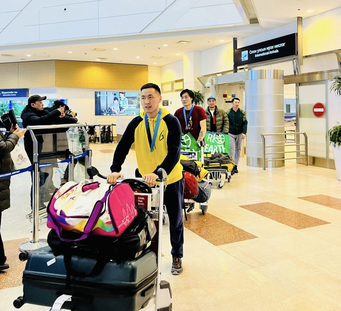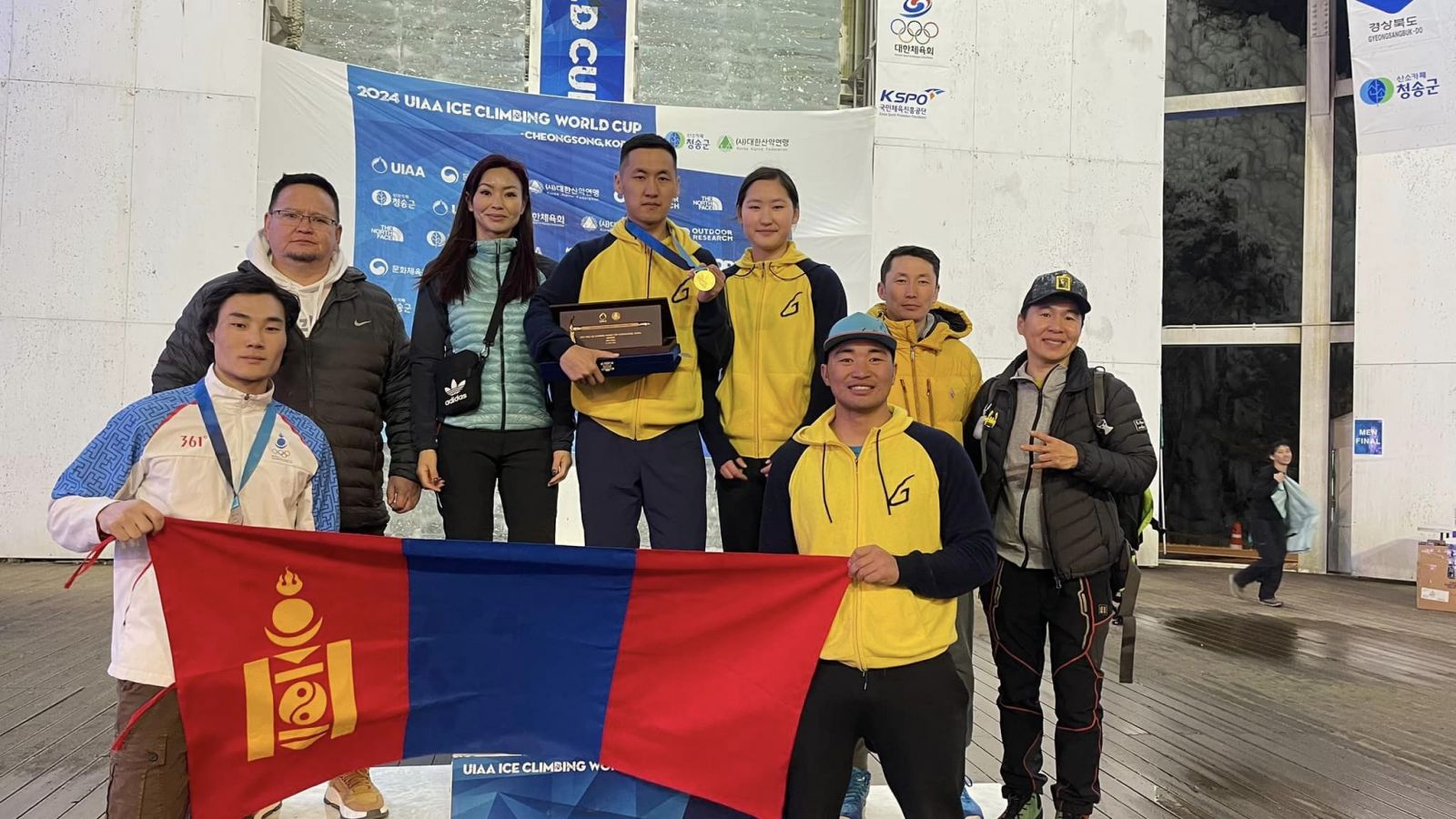 ОУУХ(UIAA)-НООС БНСУ, Чонсонд зохион байгуулсан Мөсөнд авиралтын Дэлхийн цомын аварга шалгаруулах тэмцээнд оролцсон Монголын баг тамирчид эх орондоо ирлээ. Тэднийг "Сутайн бор" клубийн тамирчид, хөгжөөн дэмжигчдийн төлөөлөл "Чингис хаан" Олон улсын нисэх буудалд тосон авлаа. Багийн дасгалжуулагч багш МУГД, ОУХМ Ц.Хосбаяр, Спортын мастер Н.Сэлэнгэ нар даваа гаригт эх орондоо ирцгээжээ.