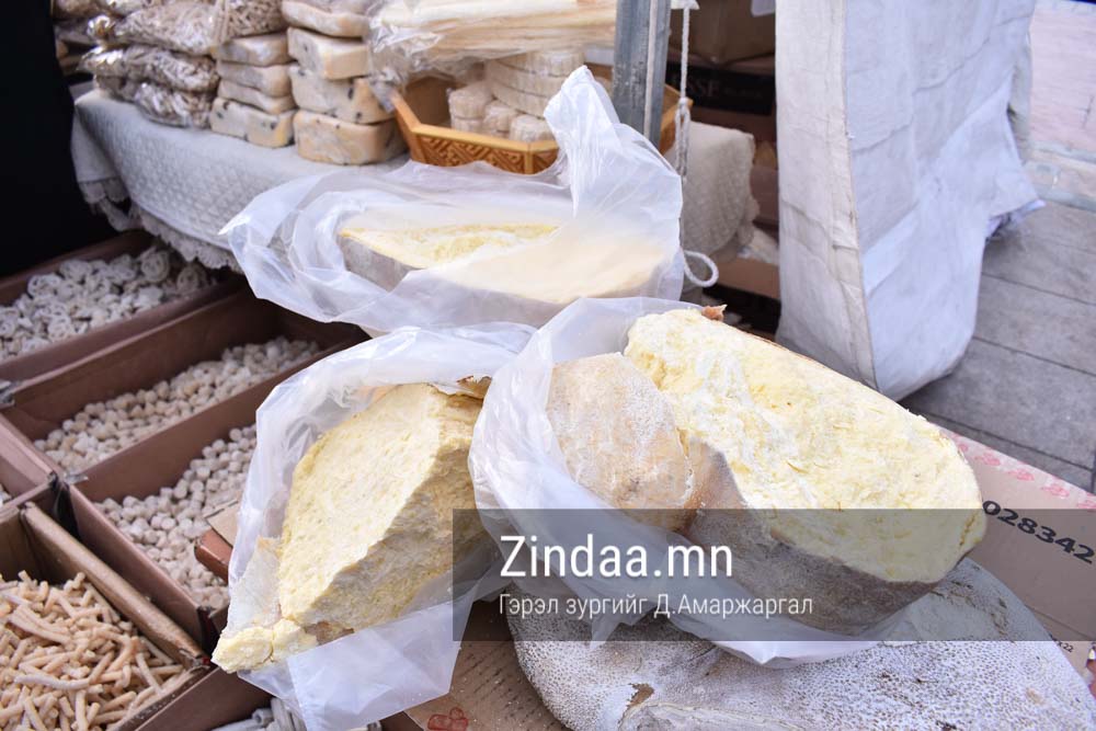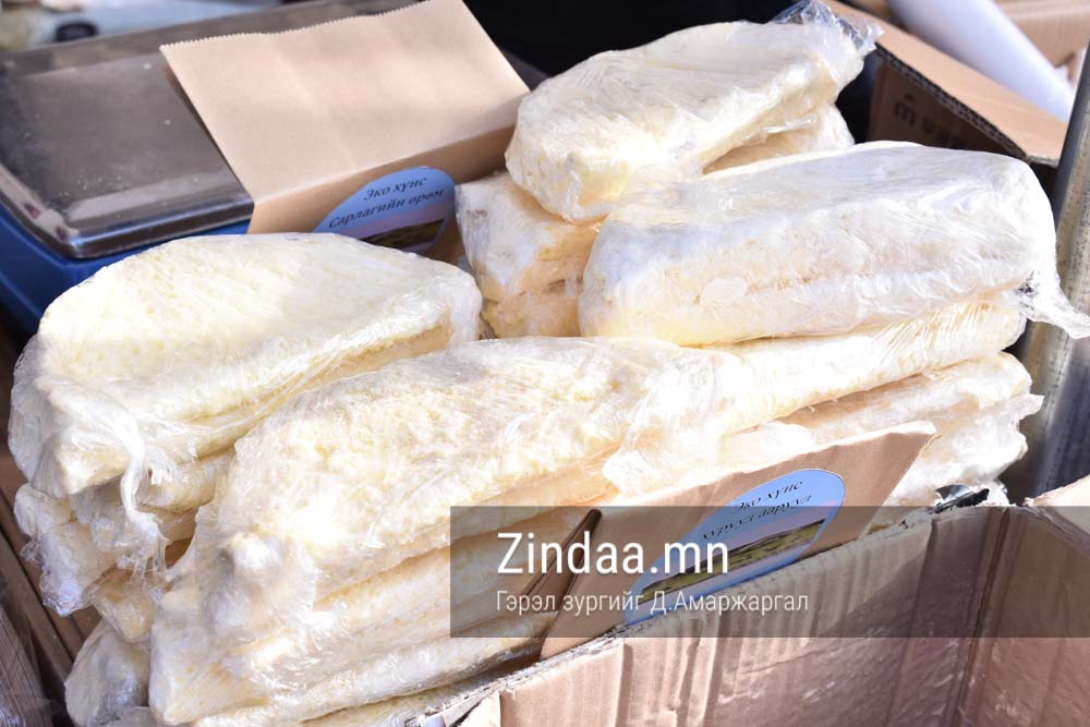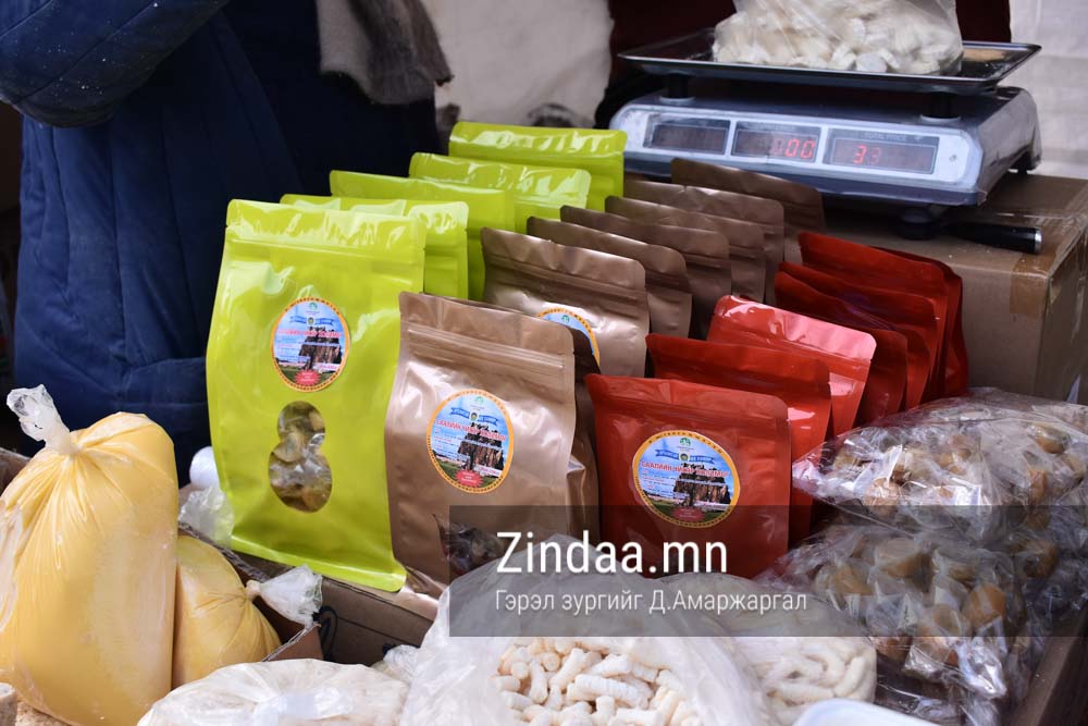 Манай лангуун дээр 10 гаруй нэр төрлийн бүтээгдэхүүн байгаа. Одоо гэхдээ бараг дуусч байна. Үзэсгэлэн худалдаан дээр гараад гурав л хонож байна. Үйлчлүүлэгчид ам сайтай байгаа. Бид ихэнхдээ шар сүүгээ бүтээгдэхүүн болгож чаддаггүй шүү дээ. Энэ зун манайх шар сүүгээрээ чихэр хийсэн. Үнэр, амт оруулагч, тогтворжуулагч огт ороогүй. Ердөө аарц болон бяслагийн шар сүүгээр хийсэн. Цөцгий болон үзэм, хулууны үр зэрэг нэмэлт бүтээгдэхүүнээр мөн баяжуулж өгсөн. Үнийн хувьд савлагаанаасаа хамаараад 5.000-15.000 төгрөгийн үнэтэй байна. Манайх 20-оод жил үзэсгэлэнд гарч байгаа учраас мэддэг хүмүүс маань ирээд авчихдаг.