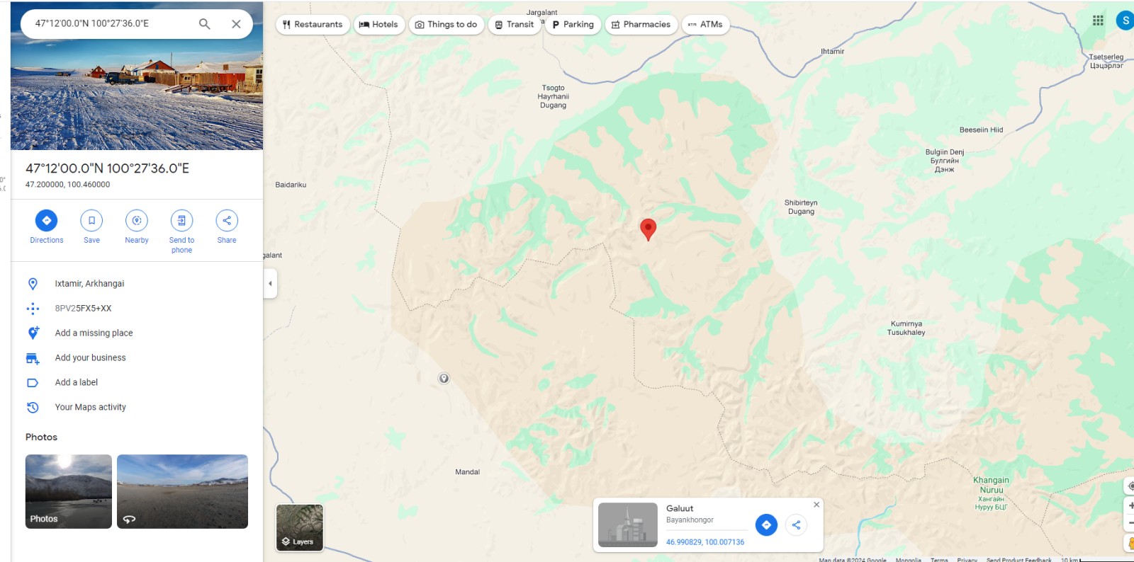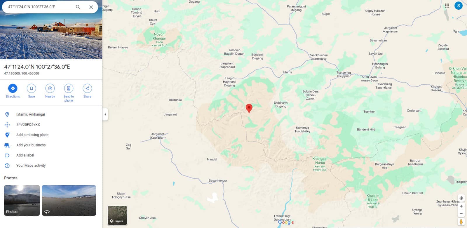 Газар зүйн байршил (Өргөрөг, Уртраг) : 47.19 100.46