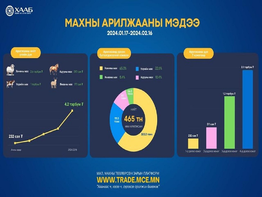 Нэг сарын хугацаанд 4.2 тэрбум төгрөгийн мал, махны арилжаа хийлээ