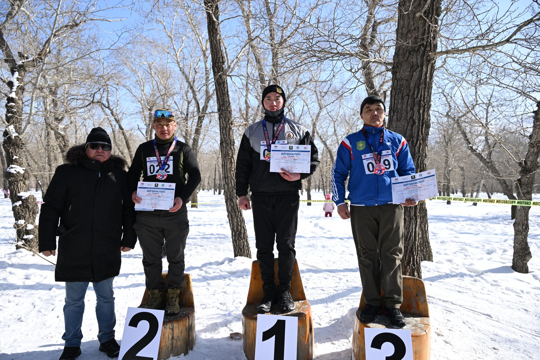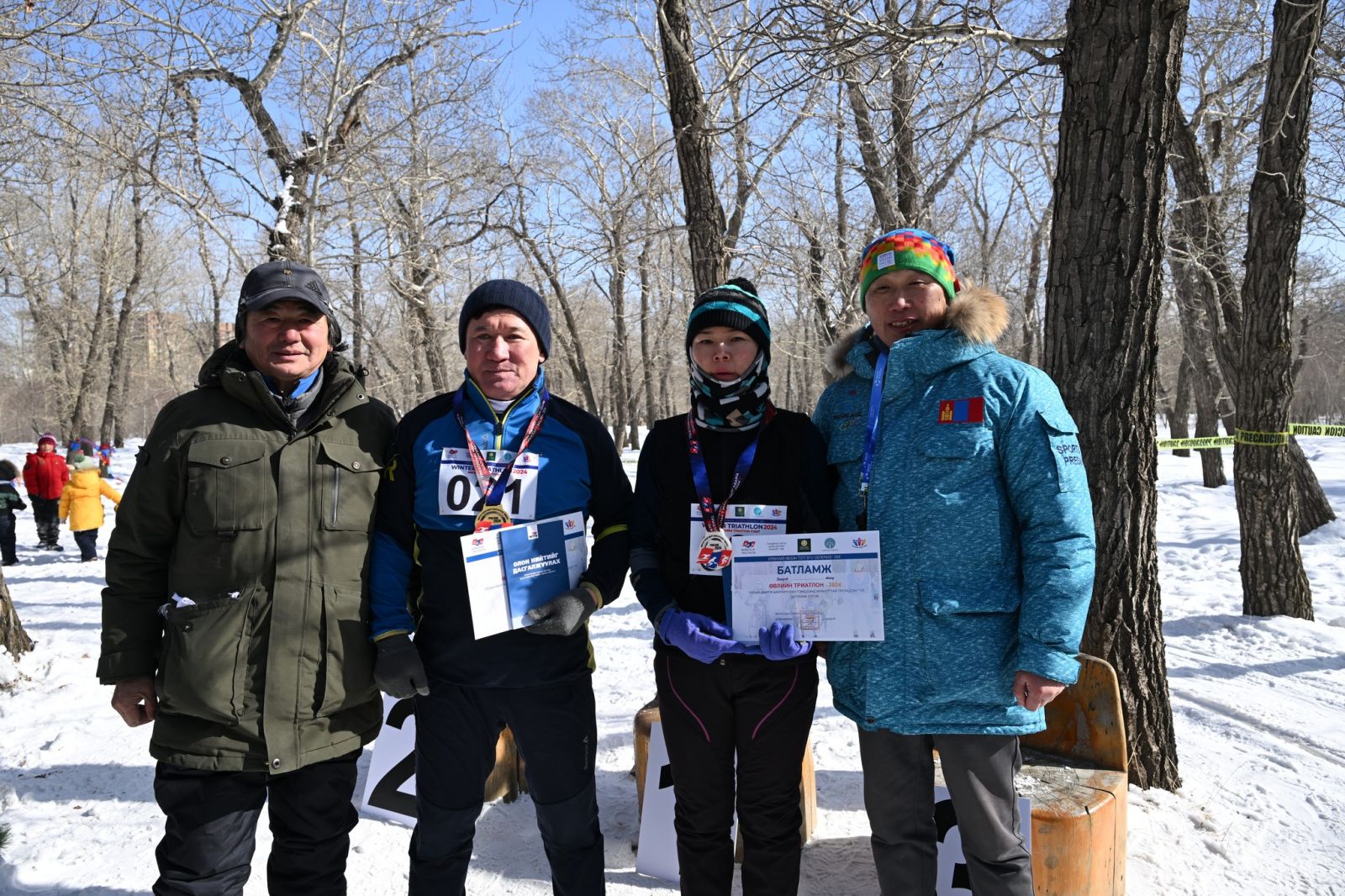 Өвлийн триатлоны УАШТ-ий хөвгүүдийн ангилалд Төв аймгийн М.Баясгалан, Б.Төгөлдөр, сонирхогчдын ангилалд Зэвсэгт хүчний 150-р ангийн Р.Дашдаваа, Хилийн цэргийн 0101-р ангийн Б.Лхагвабаатар, 0151-р ангийн Ц.Энхболд нар медалийн эзэд боллоо. Түүнчлэн сонирхогчдын дээд насны ангилалд ХХЕГ-ын дарга асан, хошууч генерал Ш.Лхачинжав, цэрэгжлийн спортын дэд мастер Ю.Туяа нар амжилттай уралдсан юм.