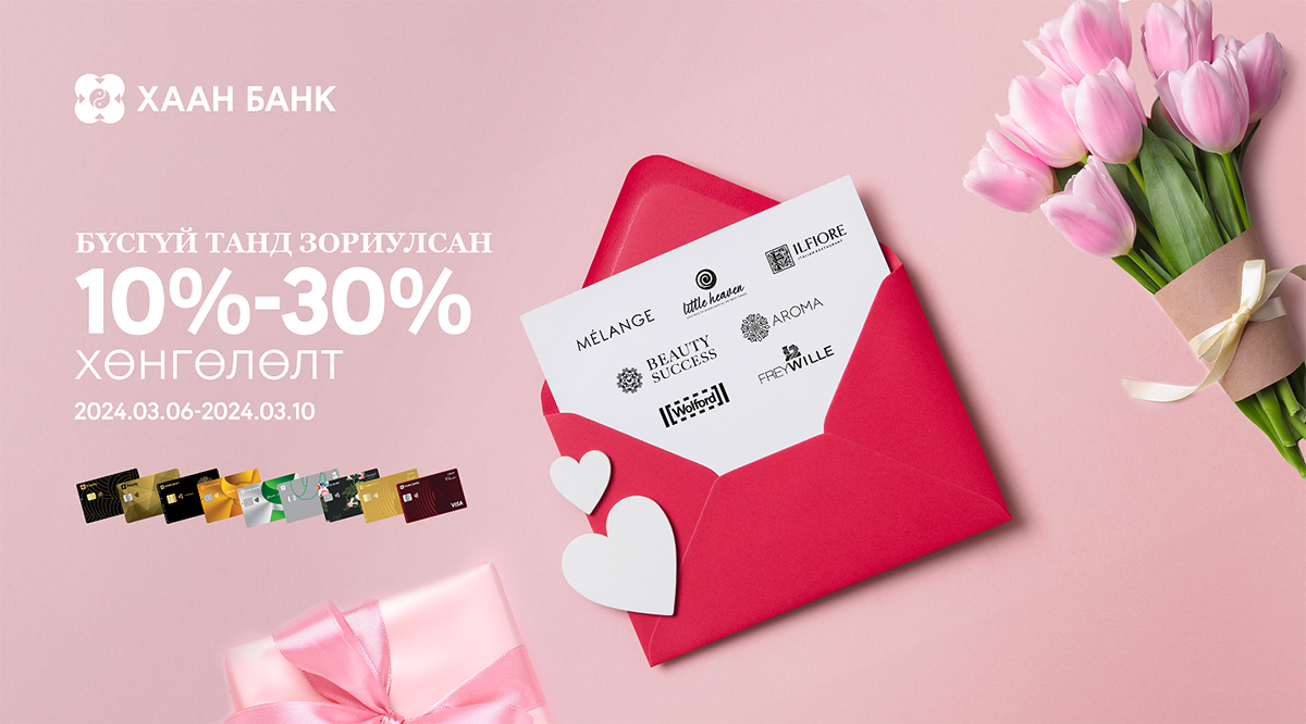 Олон улсын эмэгтэйчүүдийн эрхийг хамгаалах өдрийг угтан ХААН Банк 2024 оны 3-р сарын 6-10-ны өдрийг дуустал тав хоногийн турш картын урамшуулалт аян зарлалаа.