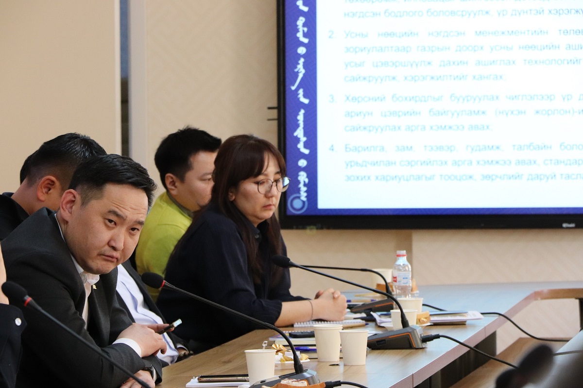 Энэ хүрээнд салбарын мэргэжилтэн, судлаачидтай эрх зүйн орчин, агаар, ус, хөрс, эрүүл аюулгүй орчны стандарт, хот төлөвлөлт, уул уурхайн үйл ажиллагааны орчны нөлөөллийн талаар санал солилцох, зөвлөлдөх хэлэлцүүлэг боллоо.