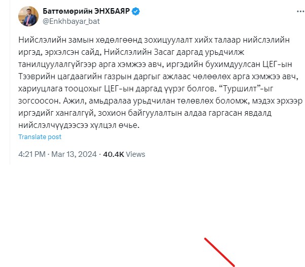 Харин Тээврийн Цагдаагийн Албанаас өчигдөр /2024.03.13/ оргил ачааллын үеэр тодорхой замын хөдөлгөөний өөрчлөн зохицуулсан. Гэхдээ үүнийгээ байнга мөрдөгдөх зохицуулалт биш, Замын хөдөлгөөний хуулийн дагуу хэрэгжүүлсэн арга хэмжээ гэж тайлбарлаад байгаа юм.