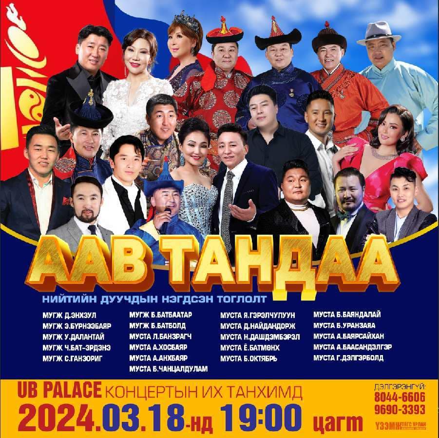 Бүх оддын хамтарсан "ААВ ТАНДАА" тоглолт гуравдугаар сарын 18-ны 19:00 цагт Улаанбаатар паласийн концертийн танхимд зохион байгуулагдах гэж байна. Тус тоглолт нь Увс аймаг Өндөрхангай сумын Жаргалант 4 дүгээр багийн харьяат Б.Батчөдөр Энэтхэг улсад элэг шилжүүлэн суулгах хагалгаанд яаралтай орох болжээ. Тиймээс, элэг нэгт ахан дүүс болон Увс нутгийн хүүгээ дэмжин туслаж "ААВ ТАНДАА" хандивын тоглолтод хүрэлцэн ирэхийг урьж байна.