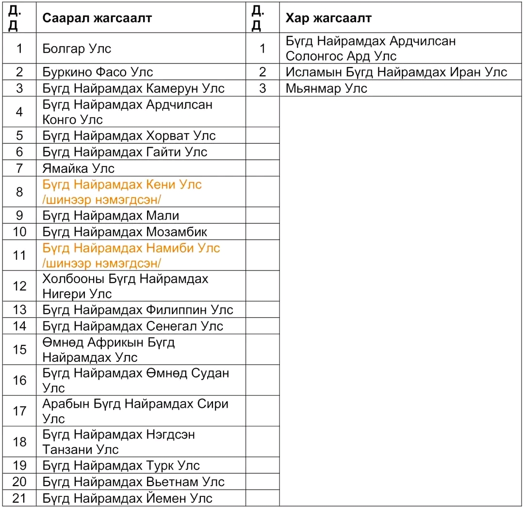Ингэснээр ФАТФ-ын "хар" ба "саарал" жагсаалтад орсон улсуудын шинэчлэгдсэн жагсаалт дараах байдалтай байна. Үүнд: