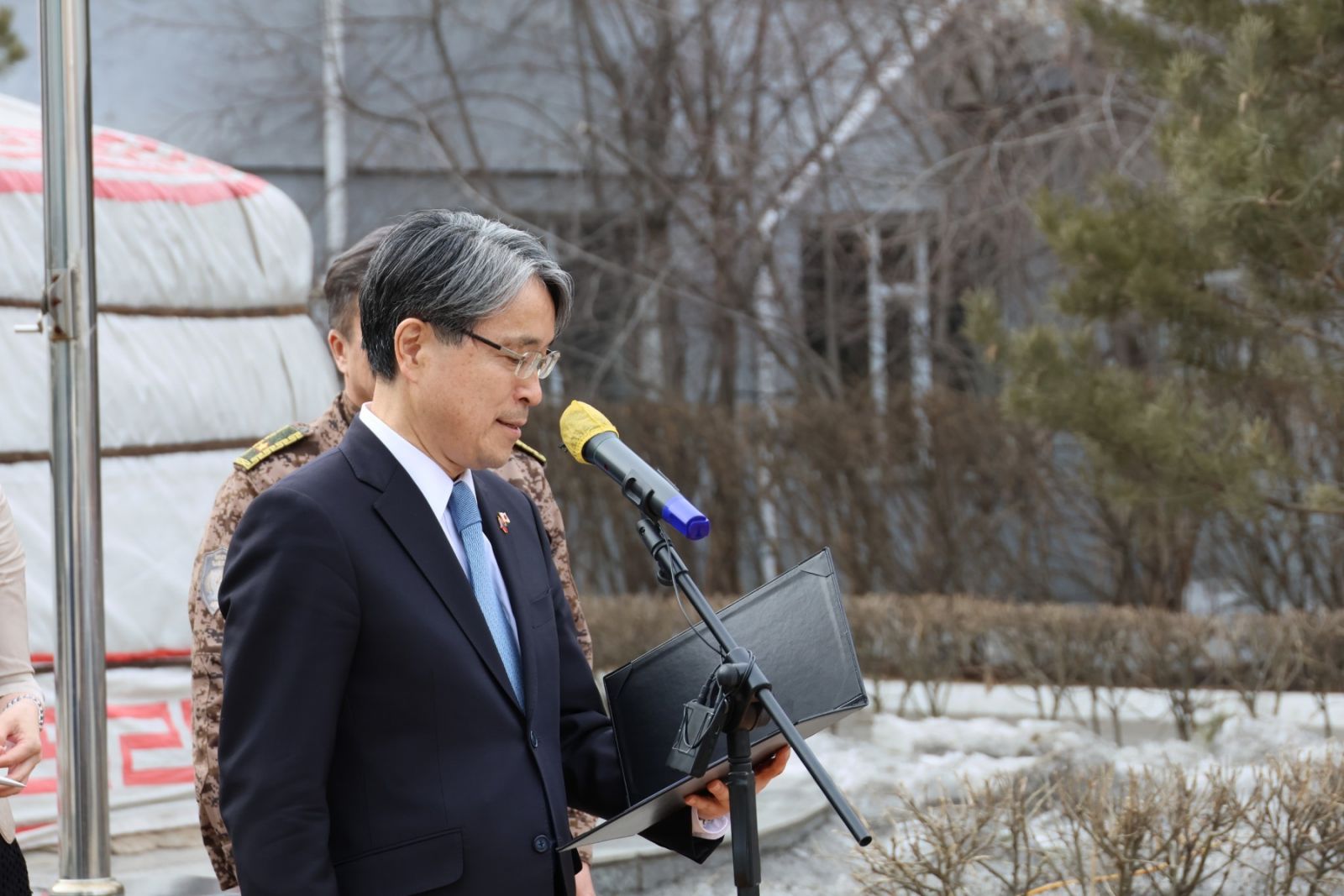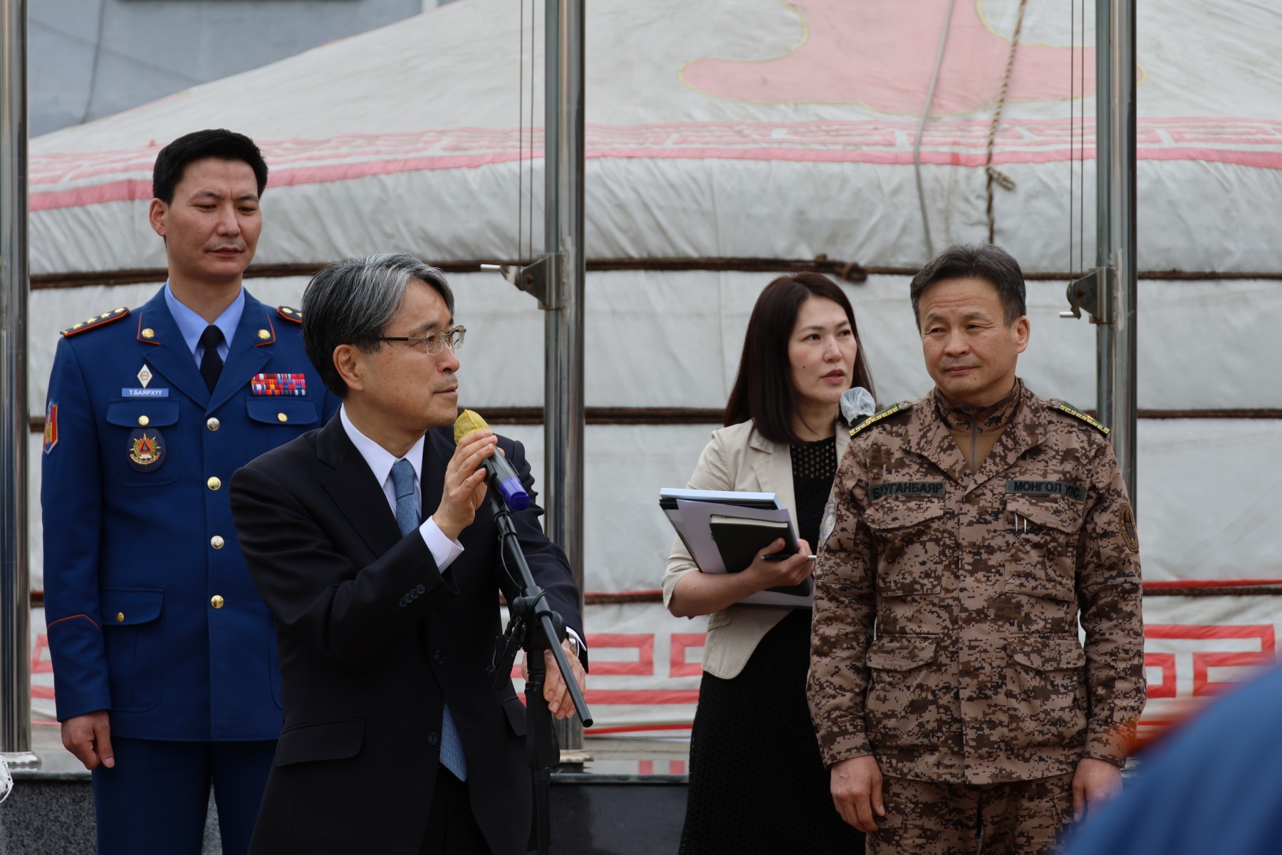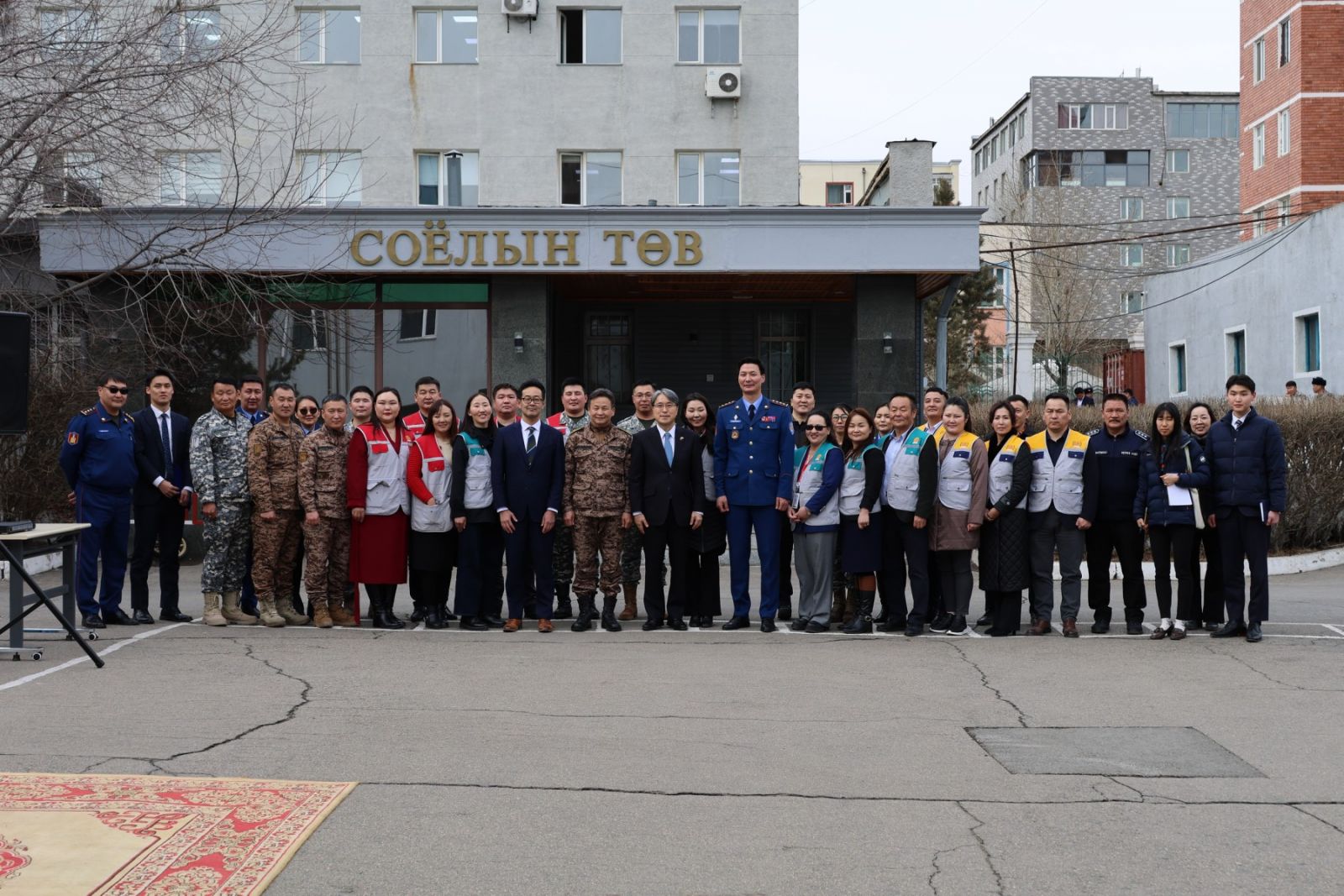 Хандивыг ОБЕГ-ын дэд дарга, бригадын генерал Б.Ууганбаяр бусад албаны хүмүүстэй хүлээн авав. Тэрээр “Энэ өвөл сүүлийн 50 жил ороогүй их цас орж газар нутгийн 90 орчим хувь нь цасан бүрхүүлтэй олон сар боллоо. Үүний улмаас өвөлжилт хүндэрч өнөөдрийн байдлаар 5.2 сая буюу нийт мал сүргийн 8.1 хувь нь хорогдоод байна. Та бүхний ирүүлсэн тусламж эрүүл мэнд, эд хөрөнгө, сэтгэл санааны хохирол амсаад буй малчдын амьдралд дэм болно гэдэгт итгэлтэй байна” гэв.