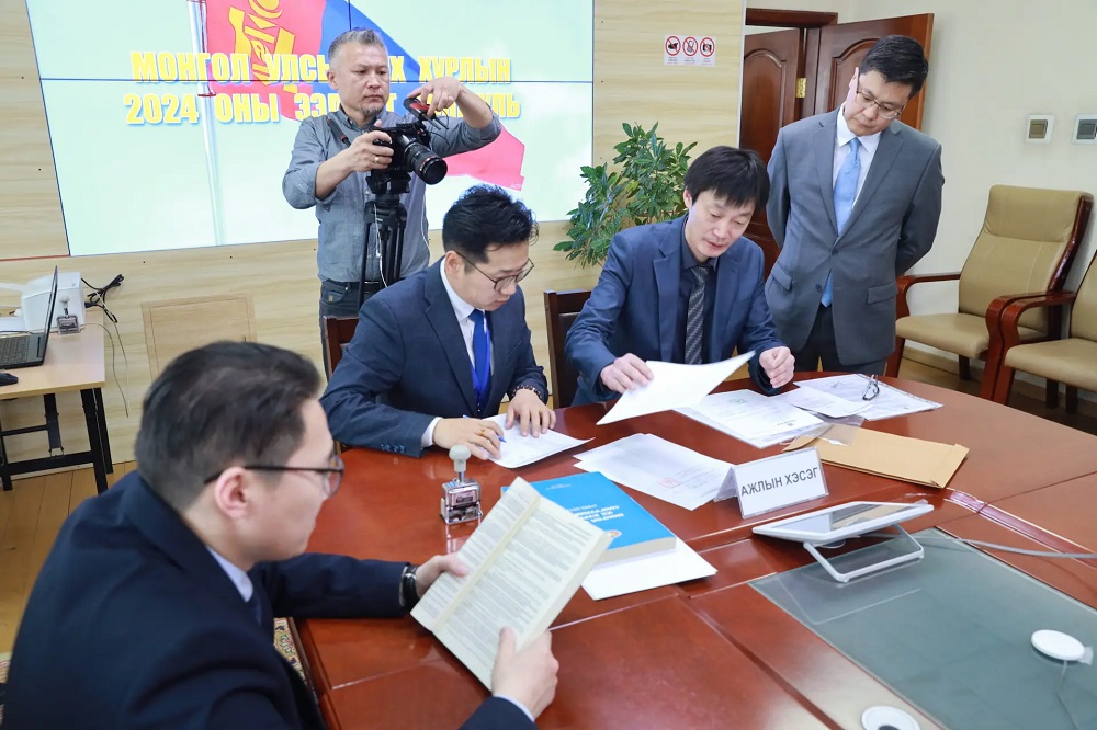 Сонгуулийн ерөнхий хорооны дарга П.Дэлгэрнаран, Нарийн бичгийн дарга Д.Даваа-Очир, гишүүн Д.Баяндүүрэн, Тамгын газрын дарга Д.Бат-Эрдэнэ нар 2024 оны дөрөвдүгээр сарын 26-ны өдөр 6 нам, 1 эвслийн хүсэлтийг хүлээн авлаа.