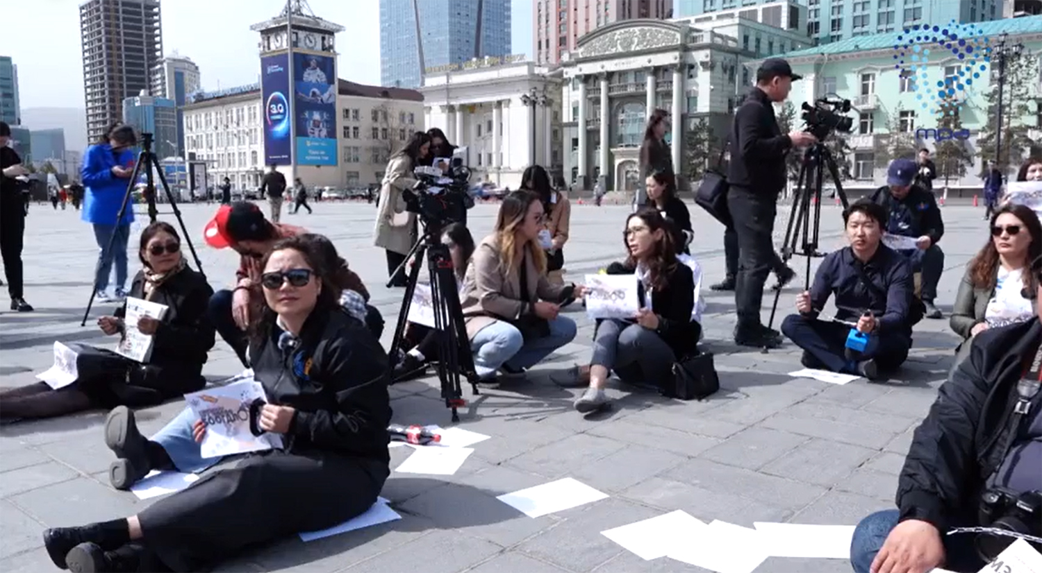 Дэлхийн Хэвлэлийн Эрх чөлөөний өдрийн хүрээнд Монголын Сэтгүүлчдийн Нэгдсэн эвлэлээс хэвлэл мэдээллийн байгууллагуудыг хамруулсан “Хэвлэлийн эрх чөлөө боогдлоо" жагсаалыг Сүхбаатарын талбайд зохион байгуулж байна.