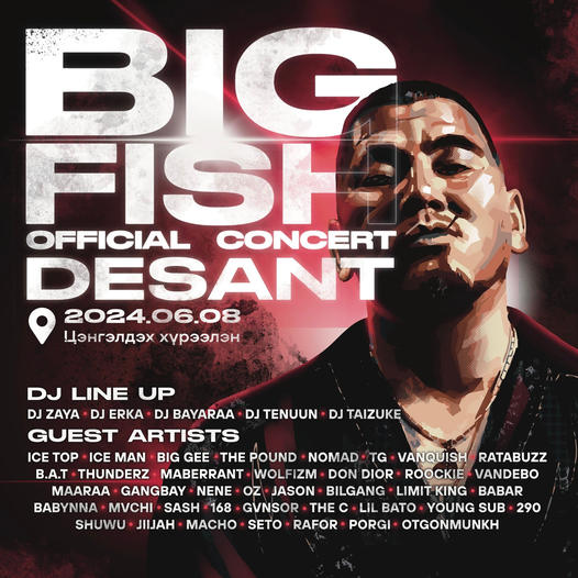 Монголын хип хоп урсгалын томоохон төлөөлөгчдийн нэг реппэр Десант ирэх 6 дугаар сарын 8-нд "Big Fish" нэртэй бие даасан тоглолтоо хийхээр болсон билээ.