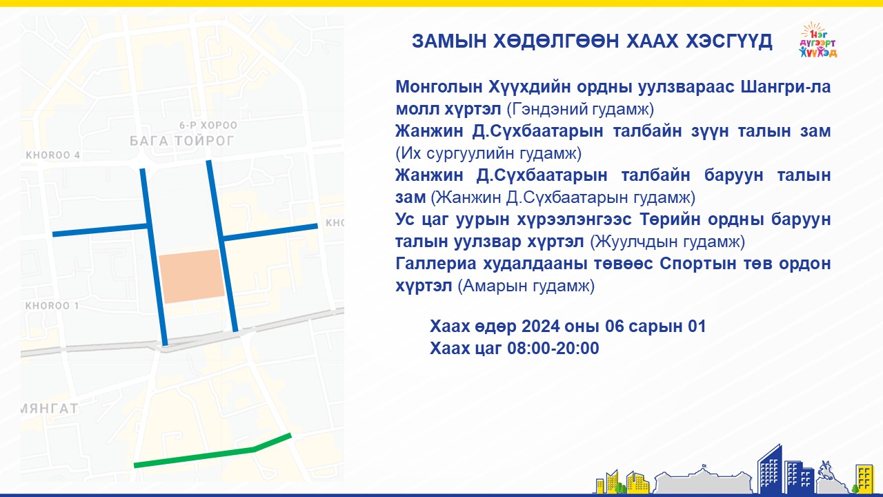 Баяртай холбогдуулан дараах чиглэлийн авто замын хөдөлгөөнийг хязгаарлана.