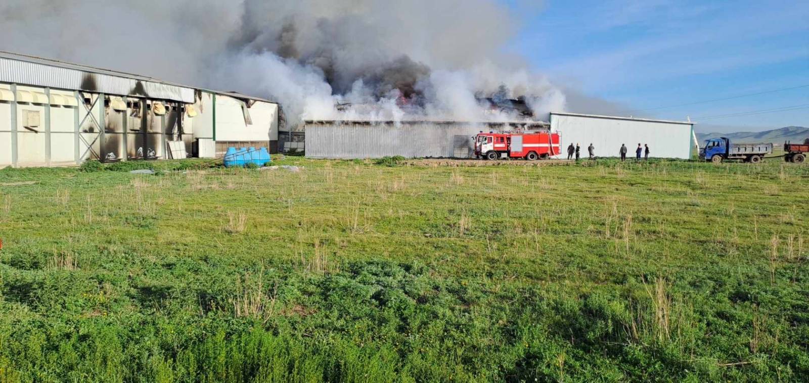 Алба хаагчдыг очиход шувууны үйлдвэрийн 18х110 метрийн хэмжээтэй есөн сендвичэн барилгын дөрөв нь галд өртсөн байдалтай байсан бөгөөд үүний гурав нь агуулах, нэг нь оффисын зориулалттай барилга байна.
