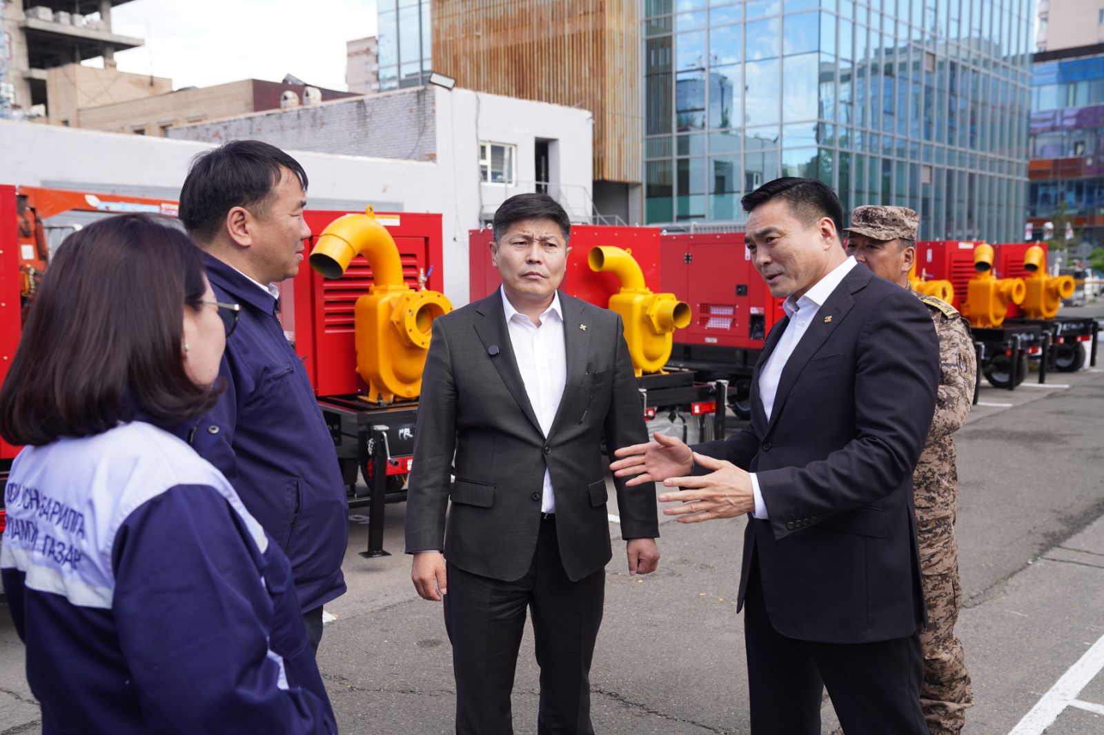 Энэ хүрээнд УОК, нийслэлийн ЗДТГ, ОБЕГ-аас дүүргийн ЗДТГ-уудыг ус зайлуулах насосоор хангалаа. 1 цагт 300 метр.куб ус сорох хүчин чадалтай тус насосыг дүүргүүдийн үерийн эрсдэлтэй хороодод байрлуулах юм.