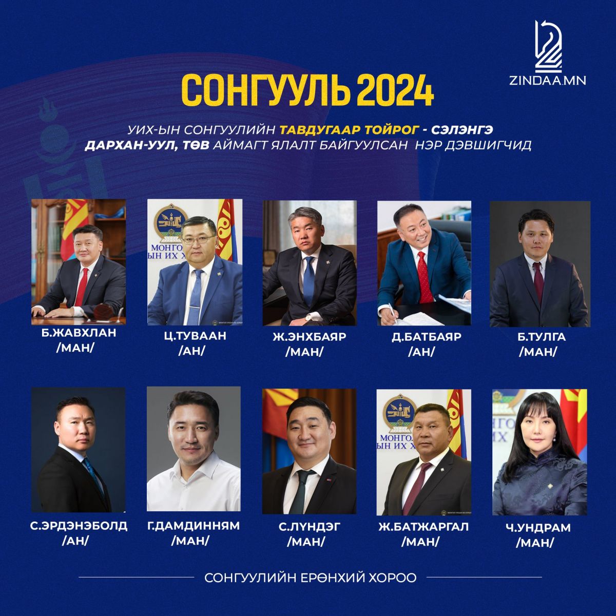 Сонгуулийн ерөнхий хорооноос өгсөн мэдээллээр УИХ-ын сонгуулийн тавдугаар тойрог буюу Төв, Сэлэнгэ, Дархан-Уул аймагт дараах нэр дэвшигчид урьдчилсан байдлаар хамгийн өндөр санал аваад байна.