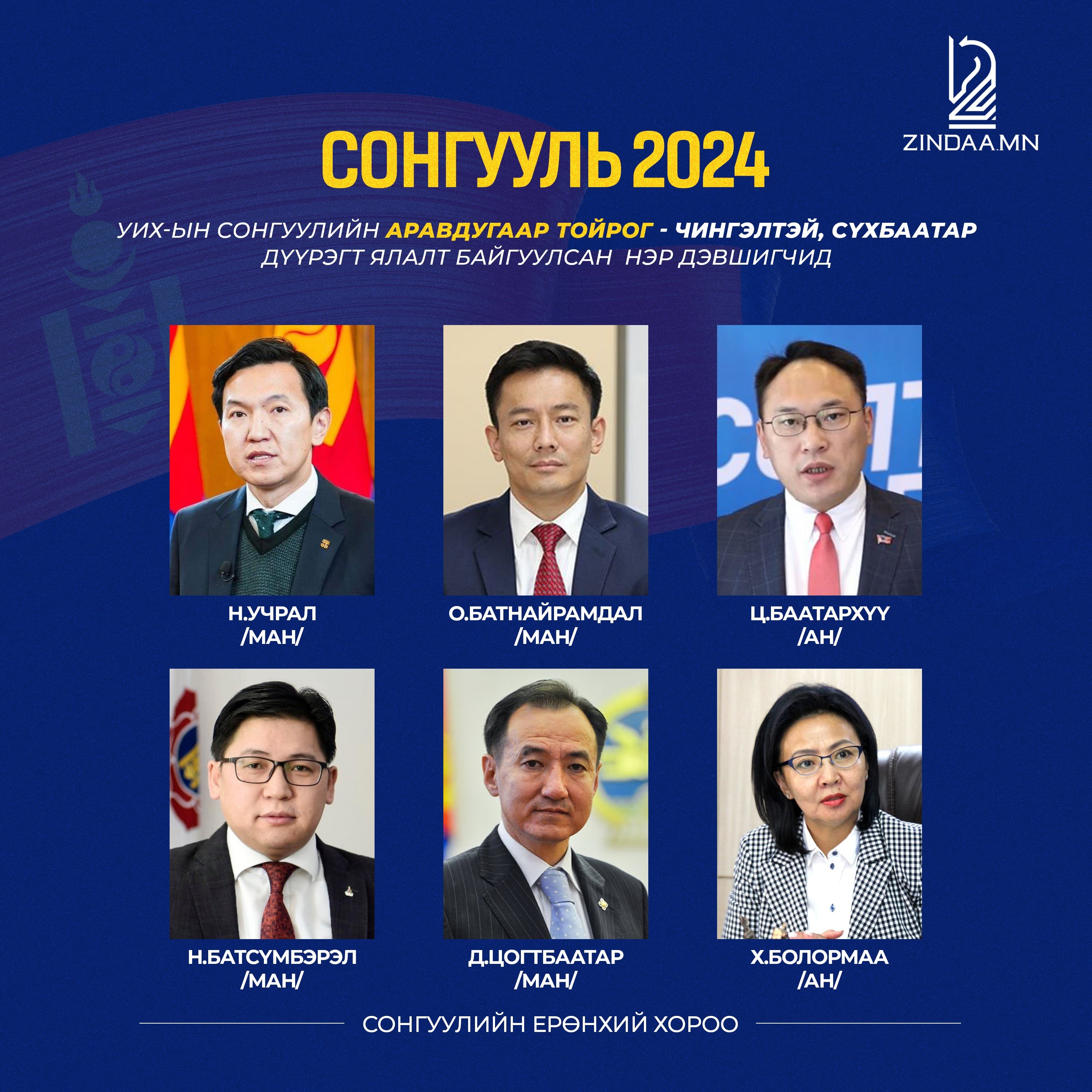 Сонгуулийн ерөнхий хорооноос өгч байгаа санал хураалтын урьдчилсан дүнгийн мэдээллээр УИХ-ын сонгуулийн 10 дугаар тойрог буюу Чингэлтэй, Сүхбаатар дүүрэгт МАН-аас нэр дэвшигч Н.Учрал, О.Батнайрамдал, Ардчилсан намаас нэр дэвшигч Ц.Баатархүү, МАН-аас нэр дэвшигч Н.Батсүмбэрэл, Д.Цогтбаатар, Ардчилсан намаас нэр дэвшигч Х.Болормаа нар сонгогчдоос хамгийн олон санал аваад байна.