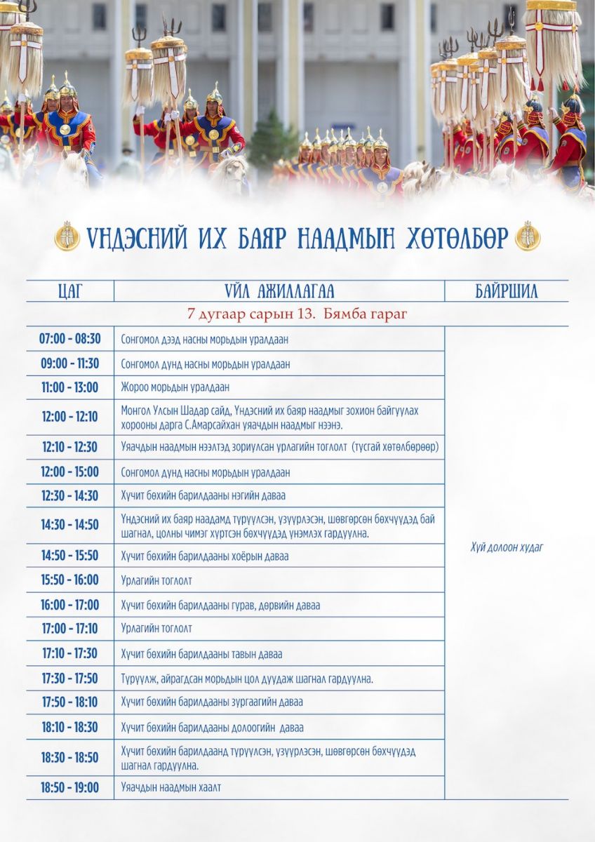 Наадмын өдрүүдэд зохион байгуулах соёл, урлагийн бусад арга хэмжээний нэгдсэн хөтөлбөрийг танилцуулж байна.