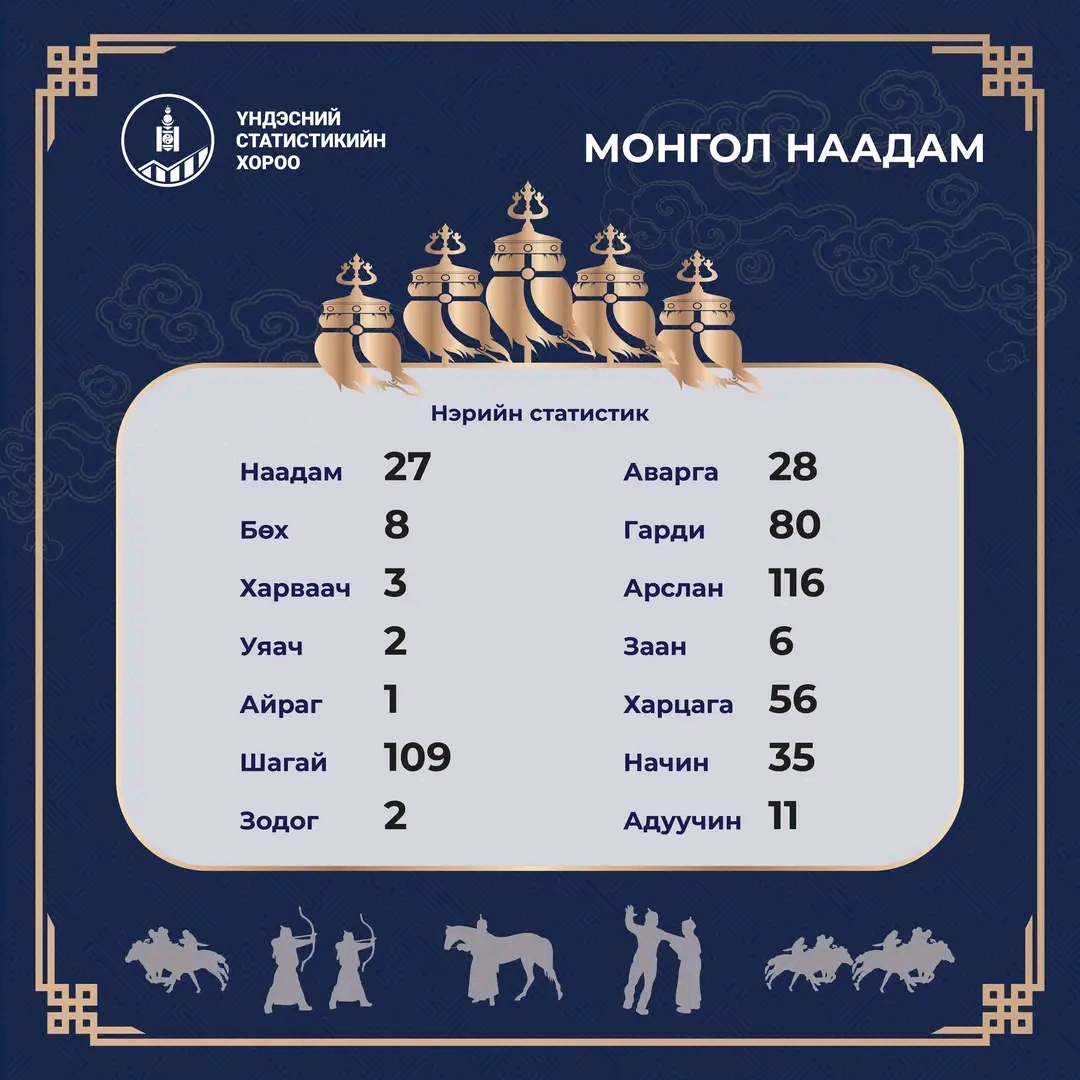 Сонирхуулахад, Хүн ам, өрхийн мэдээллийн санд өнөөдрийн байдлаар Наадам нэртэй 27 хүн байна.