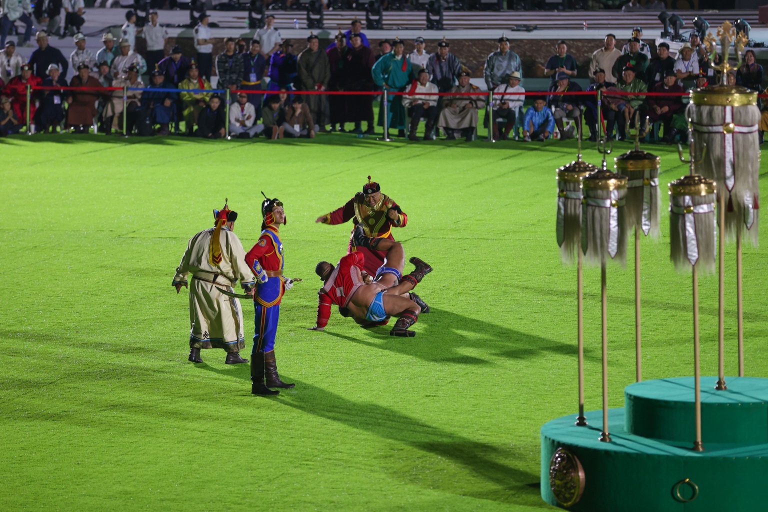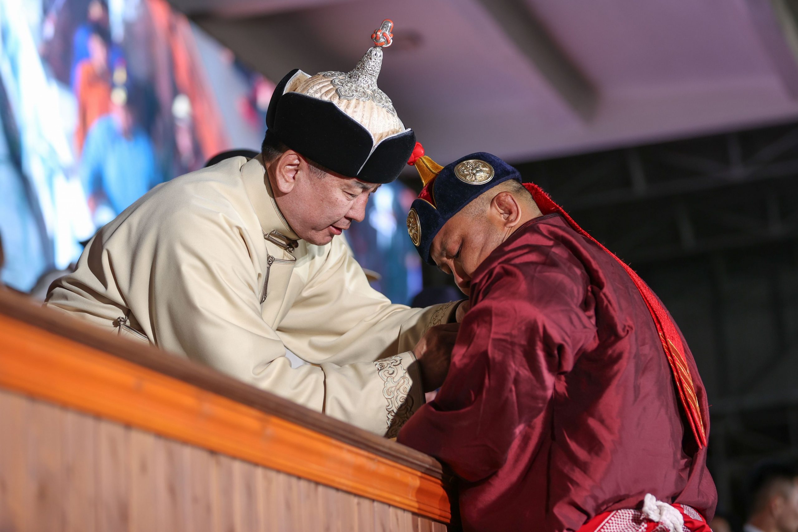 Ерөнхийлөгчийн зарлигийг Монгол Улсын Ерөнхийлөгчийн зөвлөх Ө.Золбаяр уншиж сонордуулан, Монгол Улсын Ерөнхийлөгч Ухнаагийн Хүрэлсүх Монгол Улсын дархан аварга цолны батламж, шагнал гардуулж, энгэрийн тэмдгийг нь зүүж өглөө.