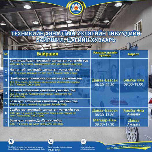 Иргэд та бүхэн техникийн хяналтын үзлэгтээ цаг тухай бүрд нь хамрагдаж, тээврийн хэрэгслийнхээ бүрэн бүтэн, аюулгүй байдлыг хангаж, өөрийгөө болон бусдыг зам тээврийн гэнэтийн ослоос урьдчилан сэргийлээрэй!