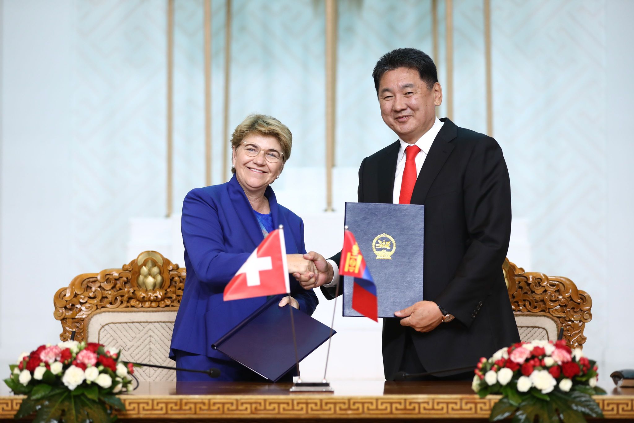 Төрийн айлчлалын үеэр хоёр улсын төрийн тэргүүн “Монгол, Швейцарын Хамтарсан тунхаглал”-д гарын үсэг зурлаа.
