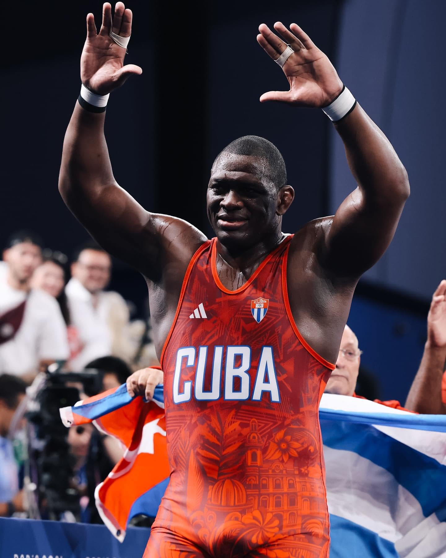 Дэлхийн 5, Олимпын 5 удаагийн аварга Михаин Лопес сонгомол бөхийн 130 кг-ын жинд Парисын олимпын аварга болсныхоо дараа дэвжээнд хүндэтгэл үзүүлэн, зодог тайлсан юм.
