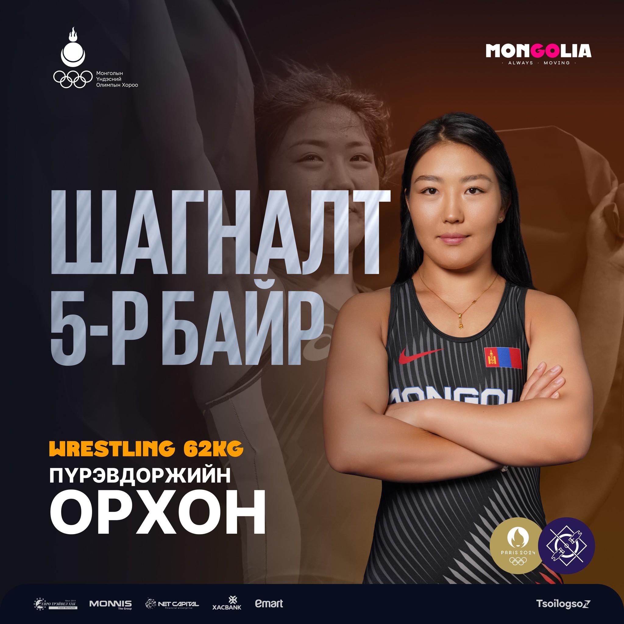“Парис-2024” Зуны олимпын ХХХIII наадмын чөлөөт бөхийн эмэгтэйчүүдийн 62 кг-д өрсөлдсөн Монгол Улсын Гавьяат тамирчин П.Орхон хүрэл медалийн төлөөх барилдаанд Киргизстаны Олимпын мөнгөн медальт, Дэлхийн 3 удаагийн аварга, Ази тивийн аварга, дэлхийн чансааг жиндээ тэргүүлэгч, Киргизийн бөх Тыныбекова Айсулуутай хүч үзсэн.