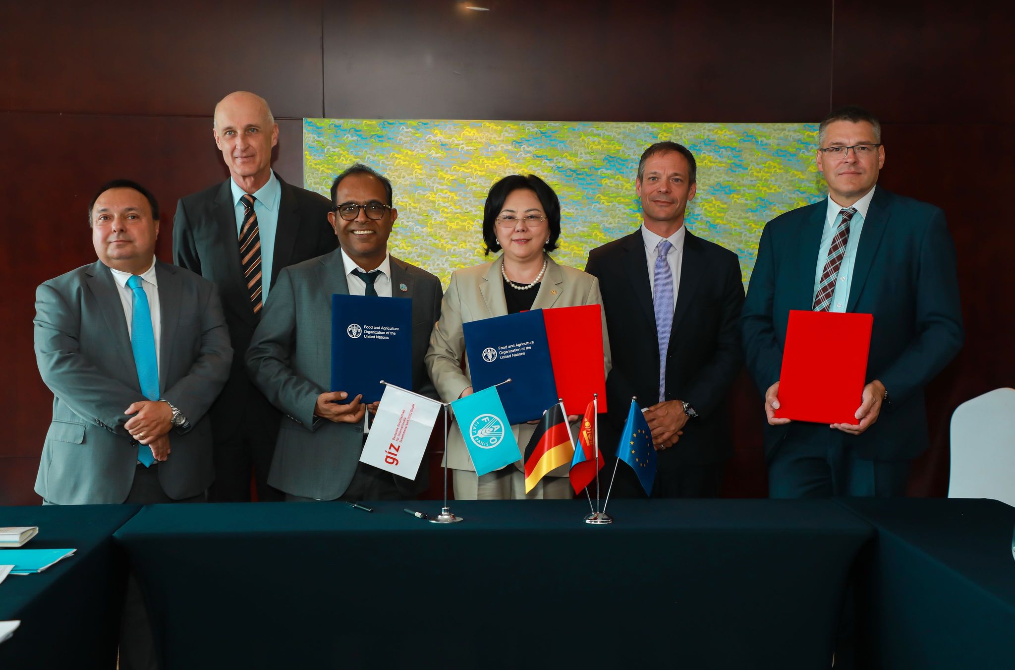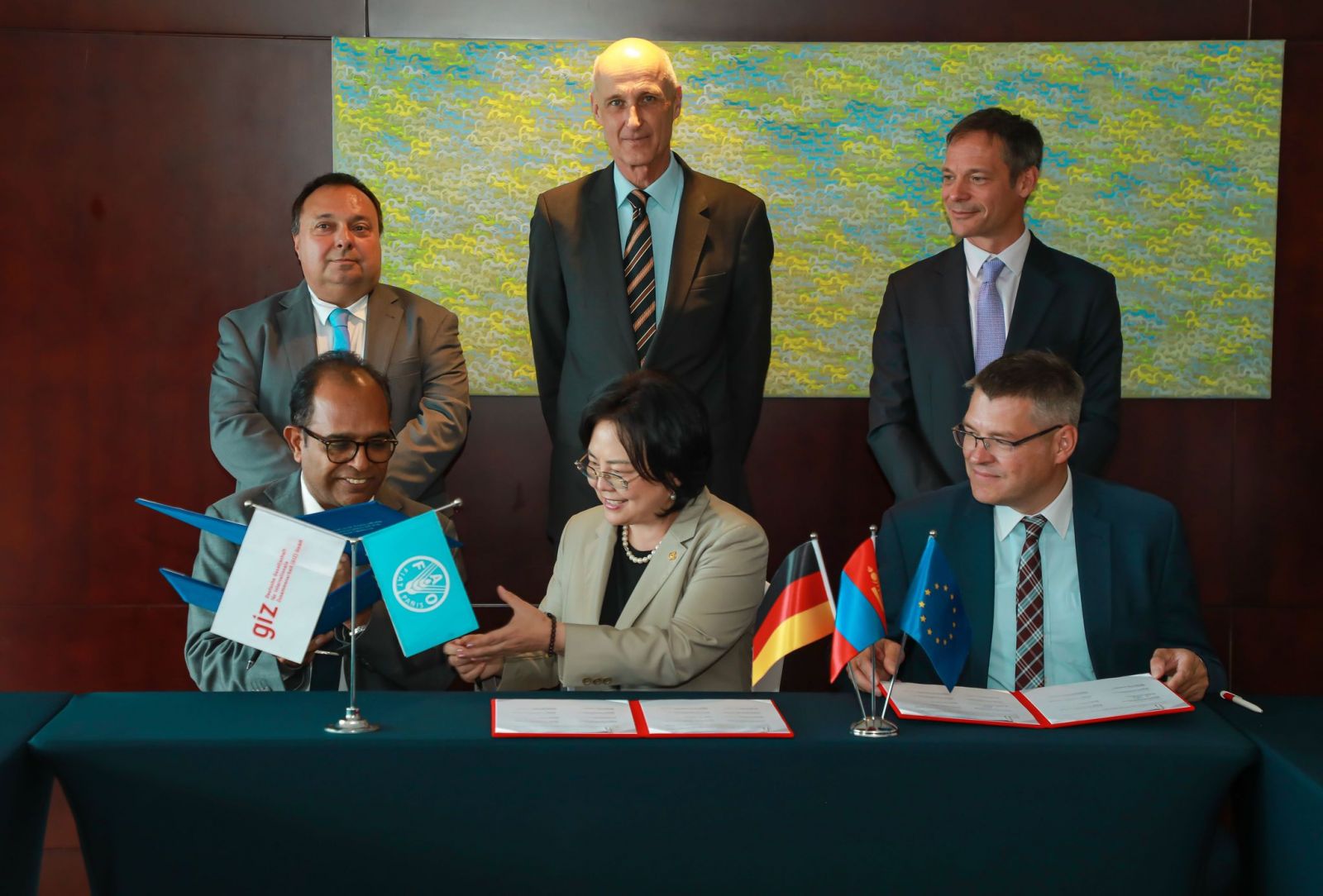 Монгол Улс, Европын Холбоо хооронд байгуулсан “Ойн түншлэл”-ийн санамж бичгийг хэрэгжүүлэх хүрээнд Европын Холбооны санхүүжилтээр хэрэгжих “Монгол орны хөдөө аж ахуйн менежмент, экосистемийн тогтвортой байдлыг хангах” төслийн 2 дугаар шатыг эхлүүлэх баримт бичигт Байгаль орчин, уур амьсгалын өөрчлөлтийн сайд С.Одонтуяа, GIZ Германы Олон улсын хамтын ажиллагааны байгууллагын Монгол дахь хөтөлбөрийн суурин төлөөлөгч Юүрген Хардвиг болон Нэгдсэн Үндэстний Байгууллагын Хүнс, хөдөө аж ахуйн байгууллагын Монгол дахь Суурин зохицуулагч Винод Ахужа нар өчигдөр /2024.08.15/ гарын үсэг зурлаа.