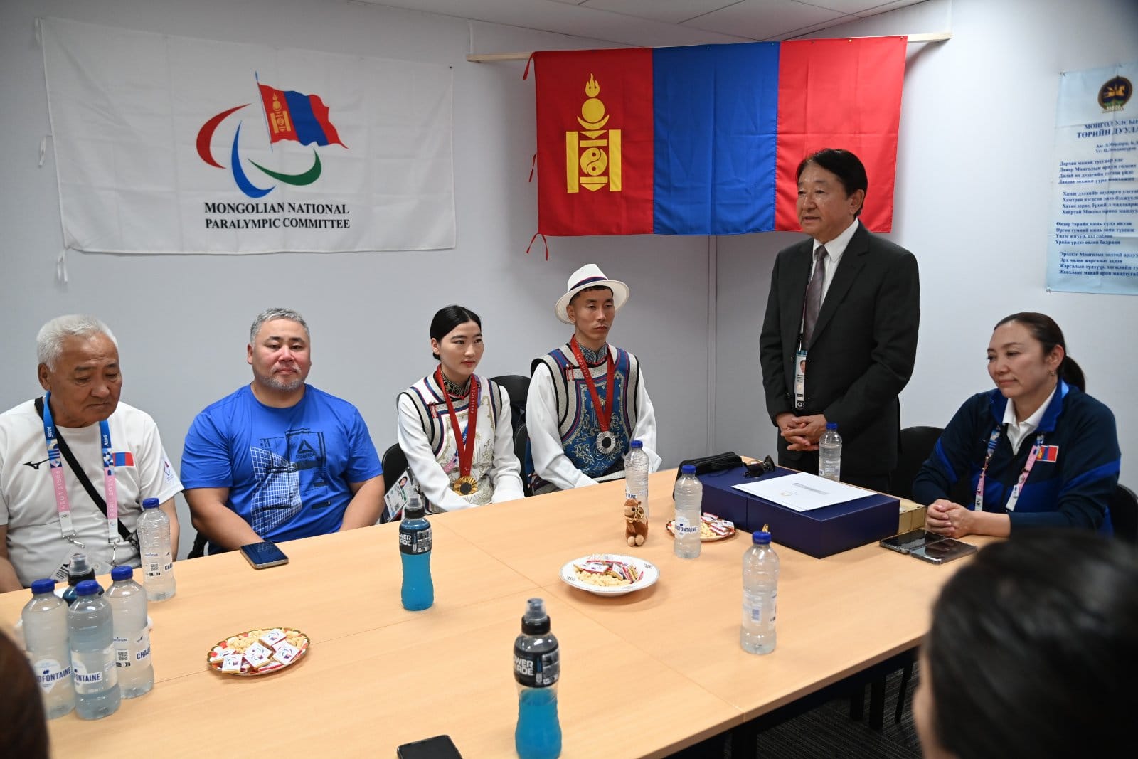 “Парис 2024" зуны паралимпын наадамд Монгол Улсын шигшээ баг тамирчид амжилттай өрсөлдөж байна. Парисийн Паралимпын наадмын Тамирчдын тосгонд Монголын үндэсний паралимпын хорооноос баг тамирчдад хүндэтгэл үзүүллээ.