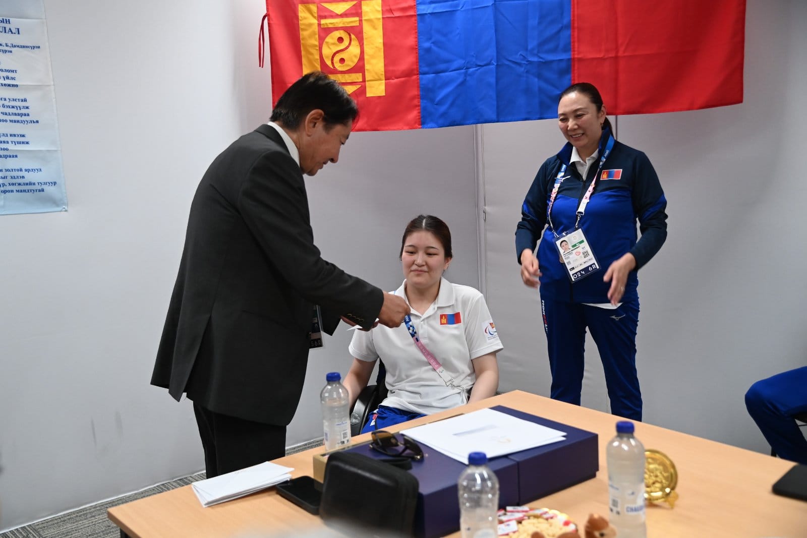 Мөн Монгол Улсын баг тамирчдынхаа салхийг хагалсан Усанд сэлэлтийн чөлөөт 50 метрийн зайд уралдсан Х.Номуун, дасгалжуулагч З.Сувд нарыг онцолж мөнгөн шагналаар урамшууллаа.