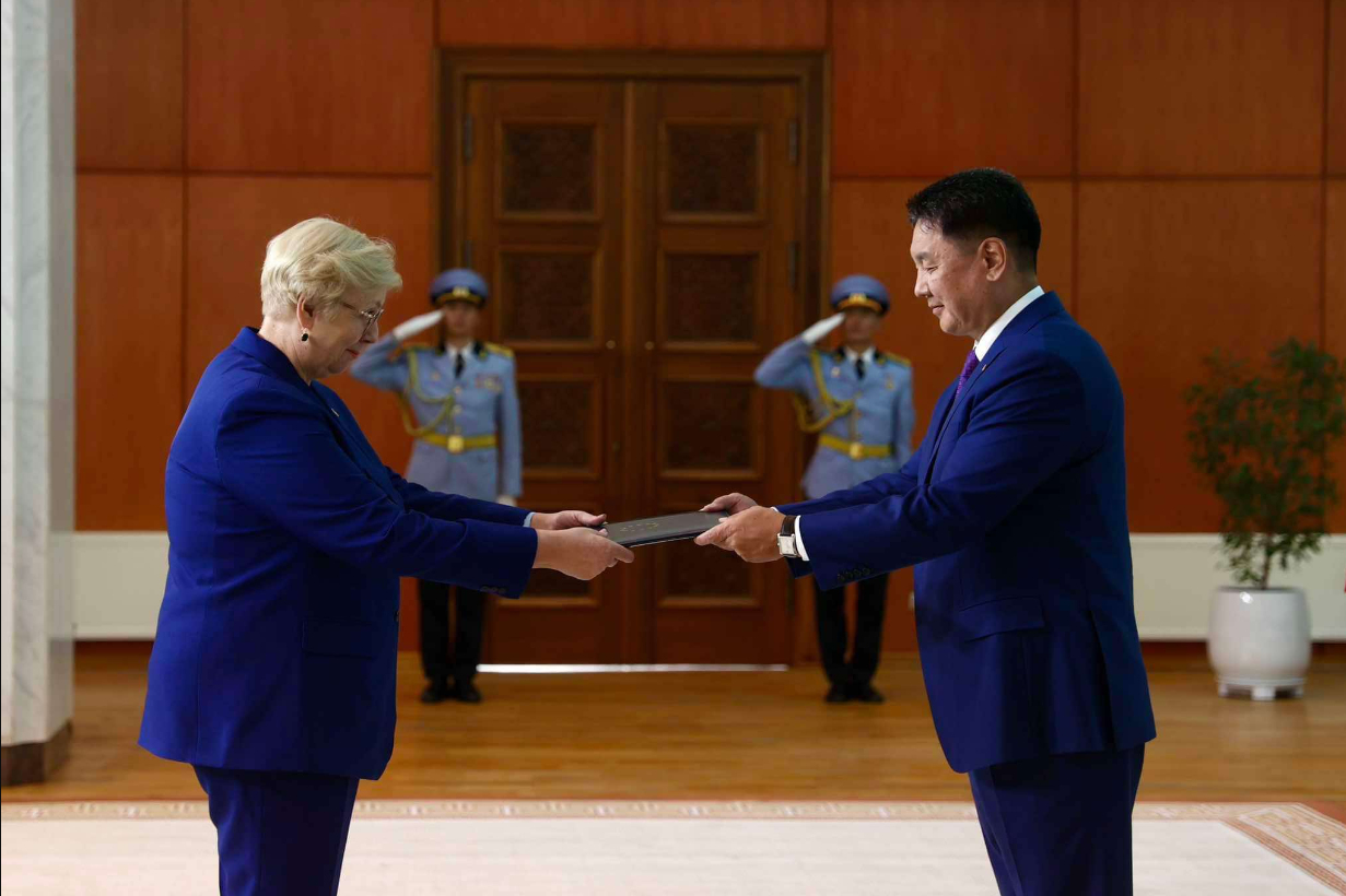Монгол Улсын Ерөнхийлөгч Ухнаагийн Хүрэлсүхэд Европын Холбооноос Монгол Улсад суух Онц бөгөөд Бүрэн эрхт Элчин сайд Ина Марчюлёните Итгэмжлэх жуух бичгээ өргөн барилаа.