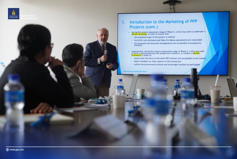 Мөн сургалтын үеэр Эдийн Засаг, Хөгжлийн Яамны Төр, Хувийн Хэвшлийн Түншлэлийн хэлтсээс Төр, хувийн хэвшлийн түншлэлийн тухай хууль болон холбогдох журмуудын талаар мэдээлэл өгч, сургалт орлоо.