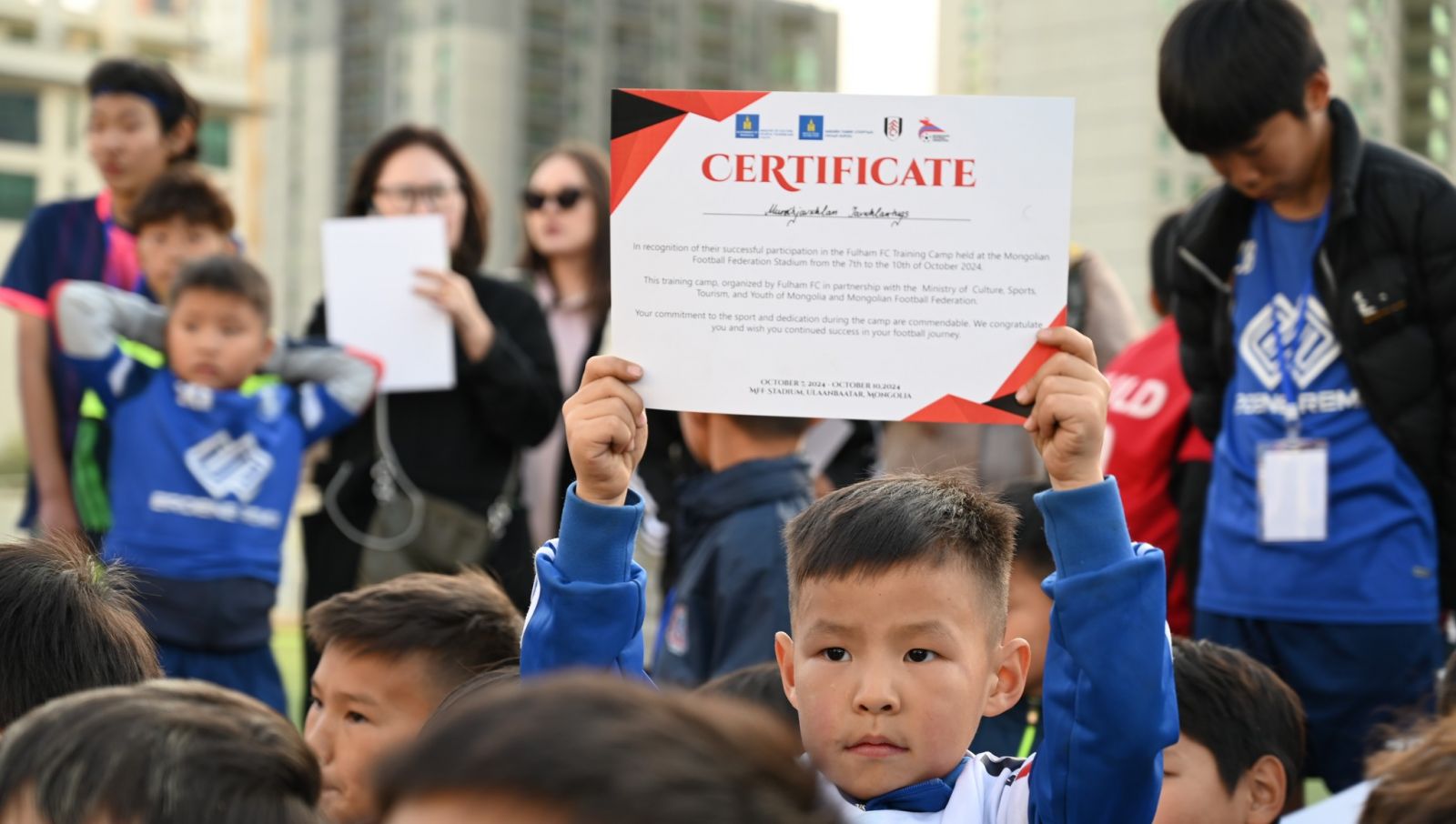 Монгол Улсын Засгийн газраас хэрэгжүүлж буй “Go Mongolia” төслийн хүрээнд зохион байгуулсан энэхүү сургалтаас шилдэг 11 хүүхдийг шалгарууллаа. Тэднийг тун удахгүй Лондон хотноо “Фулхэм” клубээс бэлдсэн хөтөлбөрт хамруулах аз завшаантай үйл явдал хүлээж байна.
