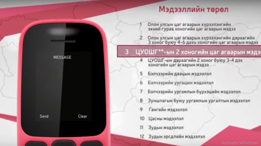 Малчид, иргэд, тээвэрчид та бүхэн өөрийн амьдарч байгаа болон ажиллаж байгаа нутаг, орныхоо цаг агаарын болон бэлчээрийн мэдээллийг гар утасны мессеж хэлбэрээр шуурхай хүлээн авах боломжтой.
