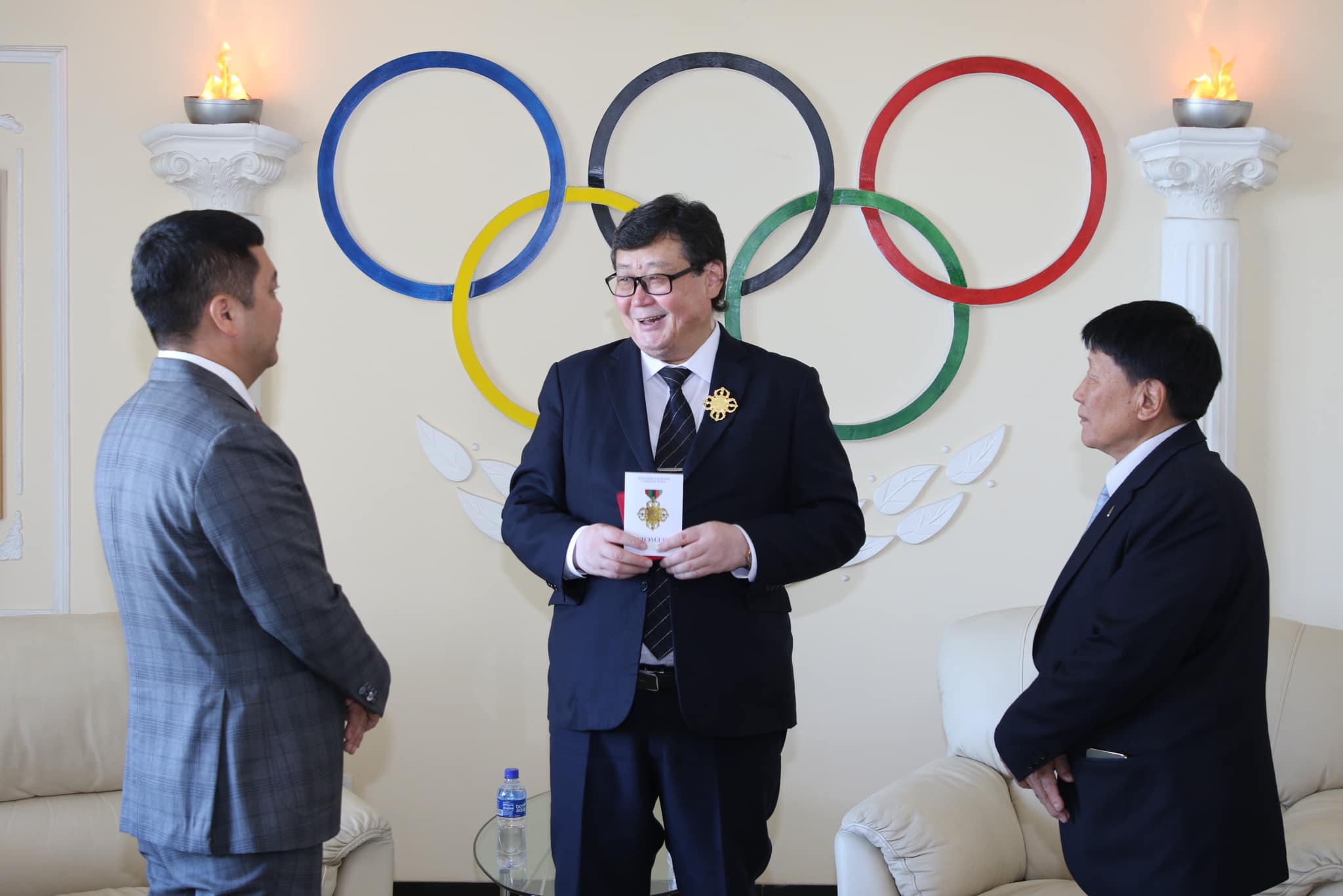 Монголын үндэсний олимпын хорооны “Алтан-Очир” шагналаар спортын зүтгэлтэн Л.Энхтөрийг шагналаа.
