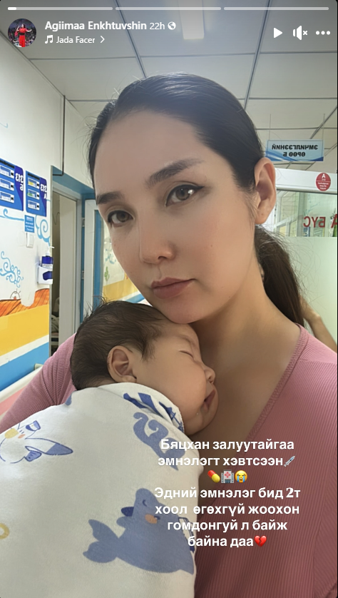 Тэрээр хоёр сартай хүүгийн хамтаар дүүргийнхээ эмнэлэгт хэвтэн эмчлүүлж байгаа бөгөөд бор хоолонд ороогүй байгаа хүүхдээ асарч байгаа эхчүүдэд эмнэлгийн хоол өгдөггүй гэх асуудлын тухай "2 сартай хүүтэйгээ дүүргийн эмнэлэгт хэвтсэн юм. Эмнэлгээс хоол өгөхгүй байна гээд юм бодолгүй стори оруулсан чинь олон хүн хурдан эдгээрэй,зарим нь хоол цай аваад очъё гэсэн байсан. Санаа тавьсан,баяр хүргэсэн сайхан сэтгэлтэй хүмүүстээ хүү бид хоёрын зүгээс чин сэтгэлээсээ баярлалаа (Гэрээс эргэлт ирж байгаа болохоор надаа санаа зоволтгүй,хоол ундны хэрэггүй шүү) За тэгээд мессежнүүдээ уншаад суутал олон хөхүүл ээжүүдийн сэтгэгдлүүд бас иржээ.