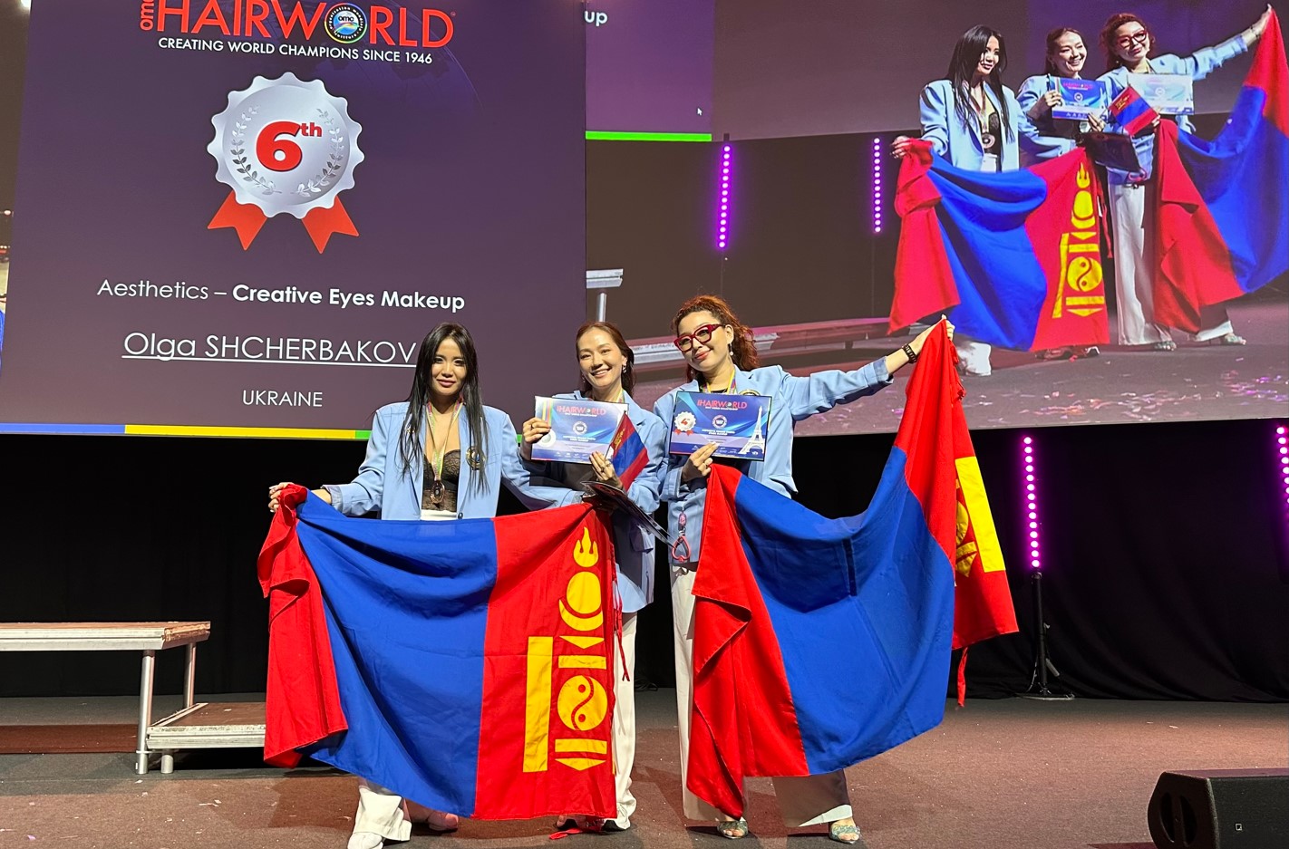 Монгол улсын үсчин гоо засалчдын баг тамирчид Франц улсын Парис хотноо энэ оны аравдугаар сарын 14-16-ны өдрүүдэд зохион байгуулагдсан “Цомын төлөөх Дэлхийн аварга” /OMC Hairworld/ тэмцээний үсчин, гоо заслын төрөлд амжилттай оролцжээ.