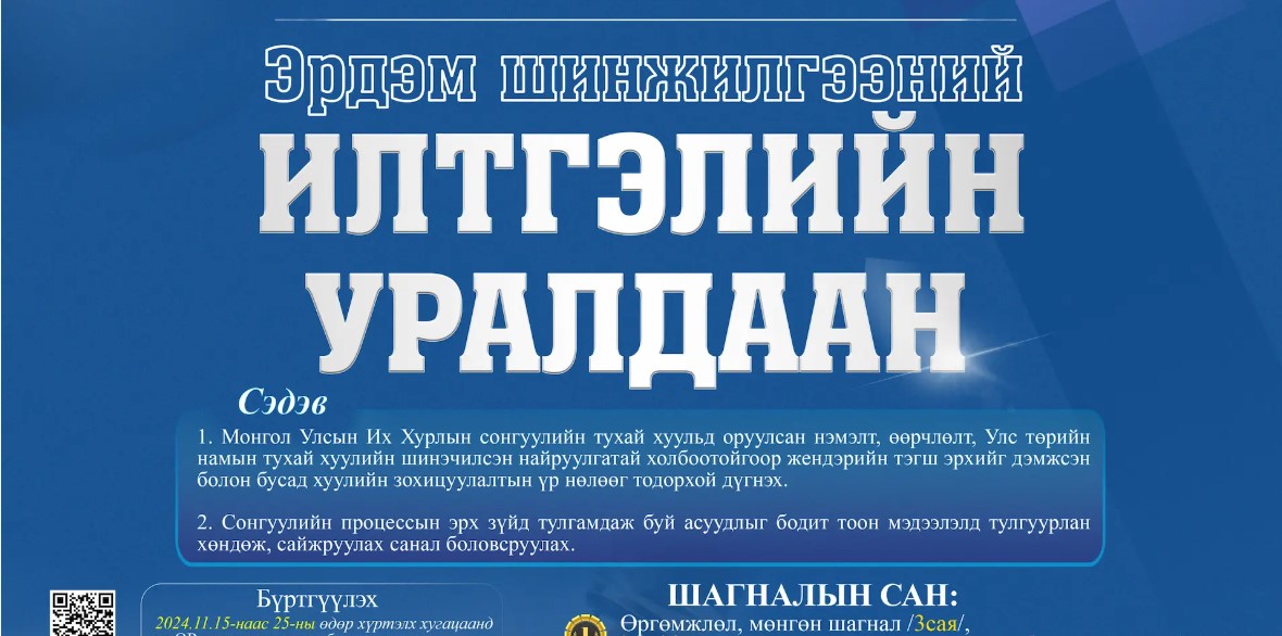 “Сонгууль-2024” эрдэм шинжилгээний илтгэлийн уралдааны удирдамжтай ЭНД дарж танилцана уу.
