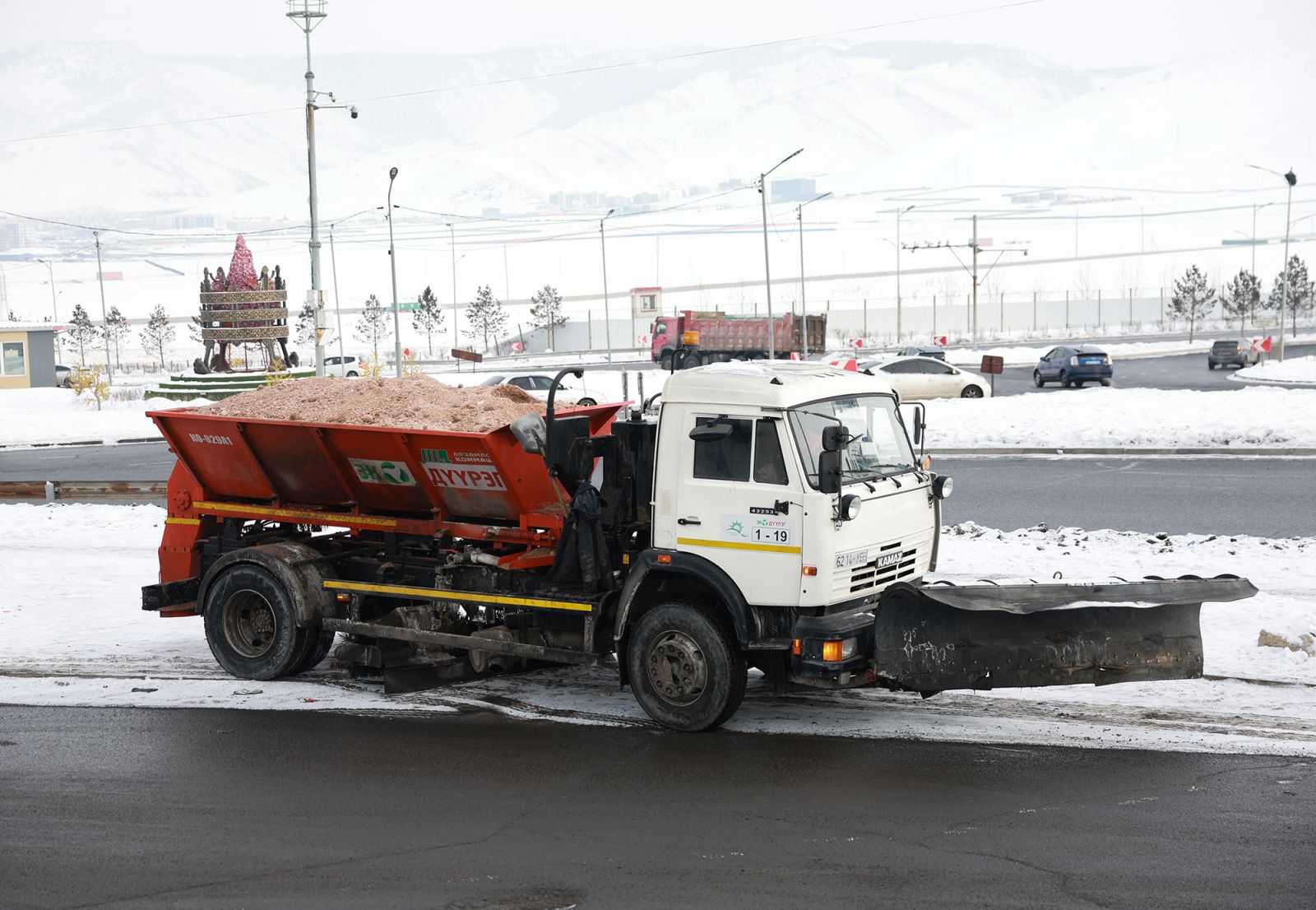 Хан-Уул дүүргийн хэмжээнд зам талбай, цэвэрлэгээ, үйлчилгээний 13 байгууллага ажилладаг. Нийт 11 зориулалтын агуулахад 1718.5 тонн давс, 735 тонн бодис нөөцөллөө. Мөн үргэлжлүүлэн давс, бодисын хэмжээг нэмэгдүүлэхээр төлөвлөн ажиллаж байна. Халтиргаа гулгаа ихээр үүсдэг даваа гүвээ, өгсүүр уруу, сүүдэр 46 байршилд 46 хайрга, давстай савыг байршуулсан. Зам, талбай шүүрдэх тусгай зориулалтын 9 машин, бага оврын зам талбай шүүрдэгч 11, зам талбайд давс цацах, чийгшүүлэх, автомат шүүрдэгчтэй камаз 4, давс цацах төхөөрөмж 15, авто замын хунгарласан их хэмжээний цас, мөсийг түрэх, хусаж цэвэрлэх зориулалттай 2 автогрейдер, 9 ковш зэргээр цэвэрлэгээ, үйлчилгээний зориулалттай техник хэрэгслүүдийн бэлэн байдлыг бүрдүүлжээ.