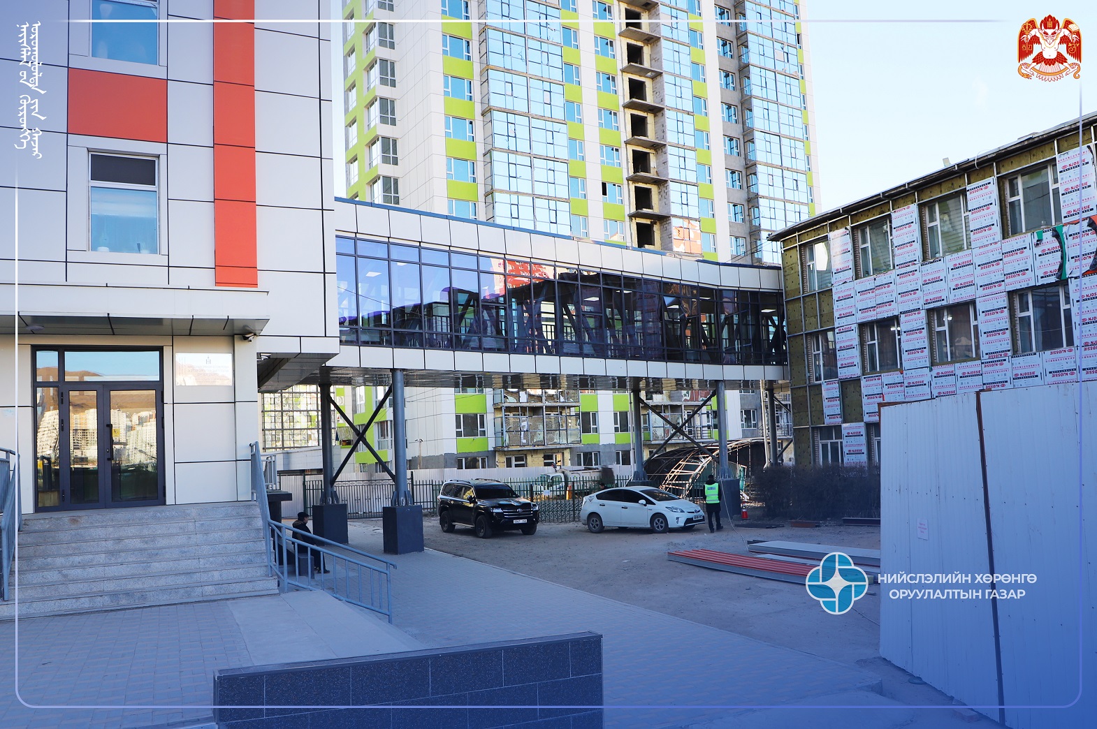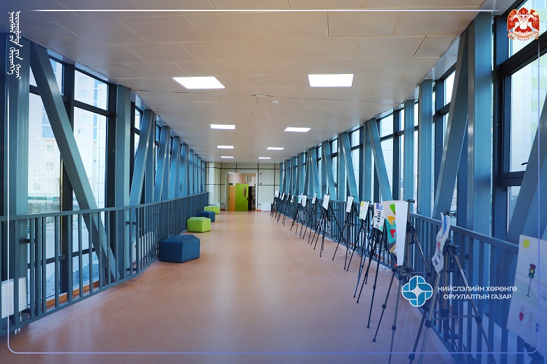 Тухайн хүзүүвчийн барилга нь шинээр баригдсан бага сургуулийн хоёрдугаар давхрын хонгил болон хуучин сургуулийн шатны хонгилыг холбосон тэнхлэгээрээ 5.2м x 28м хэмжээтэй, нийт 158.65 м.кв талбай бүхий металл карказ хийцлэлтэй, төмөр бетон хучилттай, шил болон металл хавтан өнгөлгөөтэй, эрдэс чулуун хөвөн дулаалгатай 1 давхар барилга юм. Тус ажлыг Дүүргийн хөрөнгө оруулалтаар Зорь бүтээ ХХК хийж гүйцэтгэж, Нийслэлийн Хөрөнгө оруулалтын газар захиалагчийн хяналтыг хэрэгжүүлэн ажиллалаа.