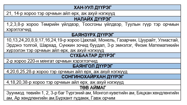 Эрчим хүчний чадлын дутагдлаас шалтгаалан өнөөдөр буюу 2024 оны арванхоёрдугаар сарын 25-ны лхагва гарагийн 18:00-20:00 цагийн хооронд Диспетчерийн үндэсний төв ТӨХХК-ийн шийдвэрээр “ХЯЗГААРЛАЛТ ХИЙЖ БОЛЗОШГҮЙ” байршлуудыг мэдээлж байна.