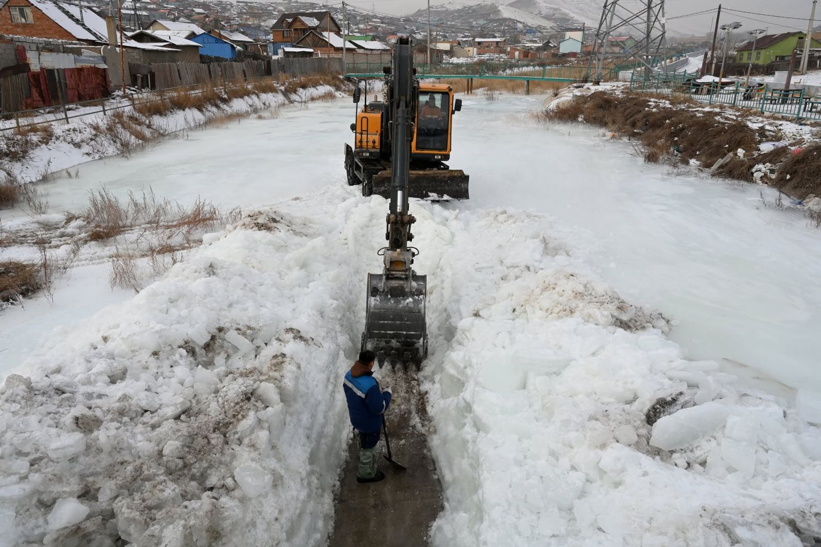 Тээвэр үйлчилгээний инженер Д.Ариунбаатар “Чингэлтэй уулнаас эхтэй булгаас халиа үүссэн хэсэгт суваг татаж, усыг чөлөөтэй урсгах, механизм болон гар ажиллагаагаар суваг татах, илүүдэл мөс тээвэрлэх зэрэг ажлыг хийж байна. Уг байршилд 250 метр орчим суваг татсан. Чингэлтэй дүүрэгт үерийн хамгаалалтын барилга байгууламжтай 3 байршил байдаг. Тус дүүргийн 11, 18 дугаар хороонд байрлах “Дэнжийн 1000”-ын 1, 3 дугаар суваг, Чингэлтэйн сувгууд жилийн дөрвөн улиралд байнгын урсацтай хоёр булагтай. Тиймээс халиа тошин, шар усны үер үүсэж, ойр орчмын айл өрхүүд усанд автах эрсдэл ихтэй байдаг” гэдгийг хэлж байв.