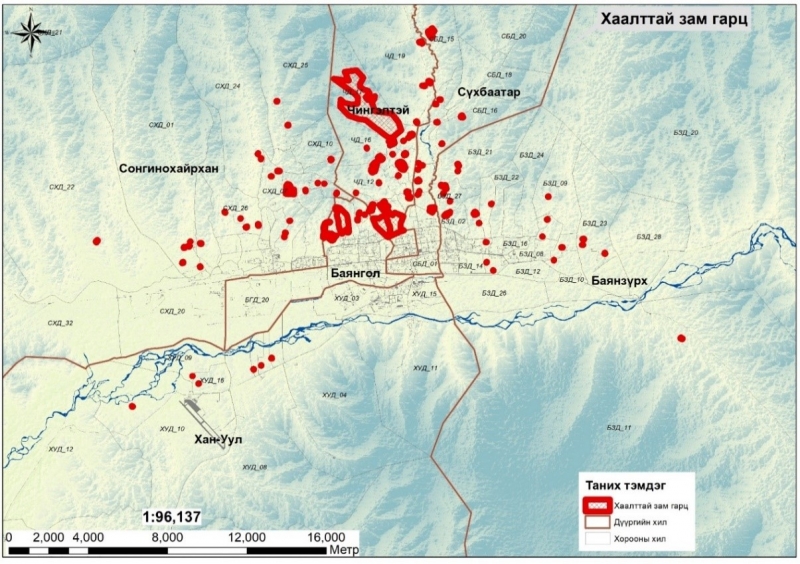 Мөн гал унтраах автомашин зорчих боломжгүй хаалттай зам, мухар гудамжны судалгааг нийслэлийн зургаан дүүргийн хэмжээнд хийж, машин очих боломжгүй, мухар гудамж, үерийн аманд буусан, үерт автах магадлалтай, өндөр хүчдэл дор буусан, машин эргэх боломжгүй, мухар, үерийн даланд байрласан, гудамж нарийсгасан, зам хааж сунгаж хашаа барьсан, өндөрлөг газарт буусан зэрэг 396 байршлыг тодорхойлон гаргалаа.